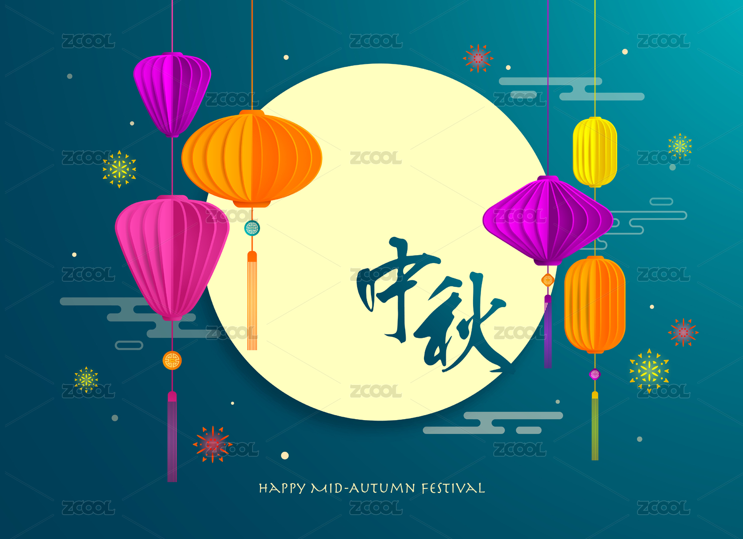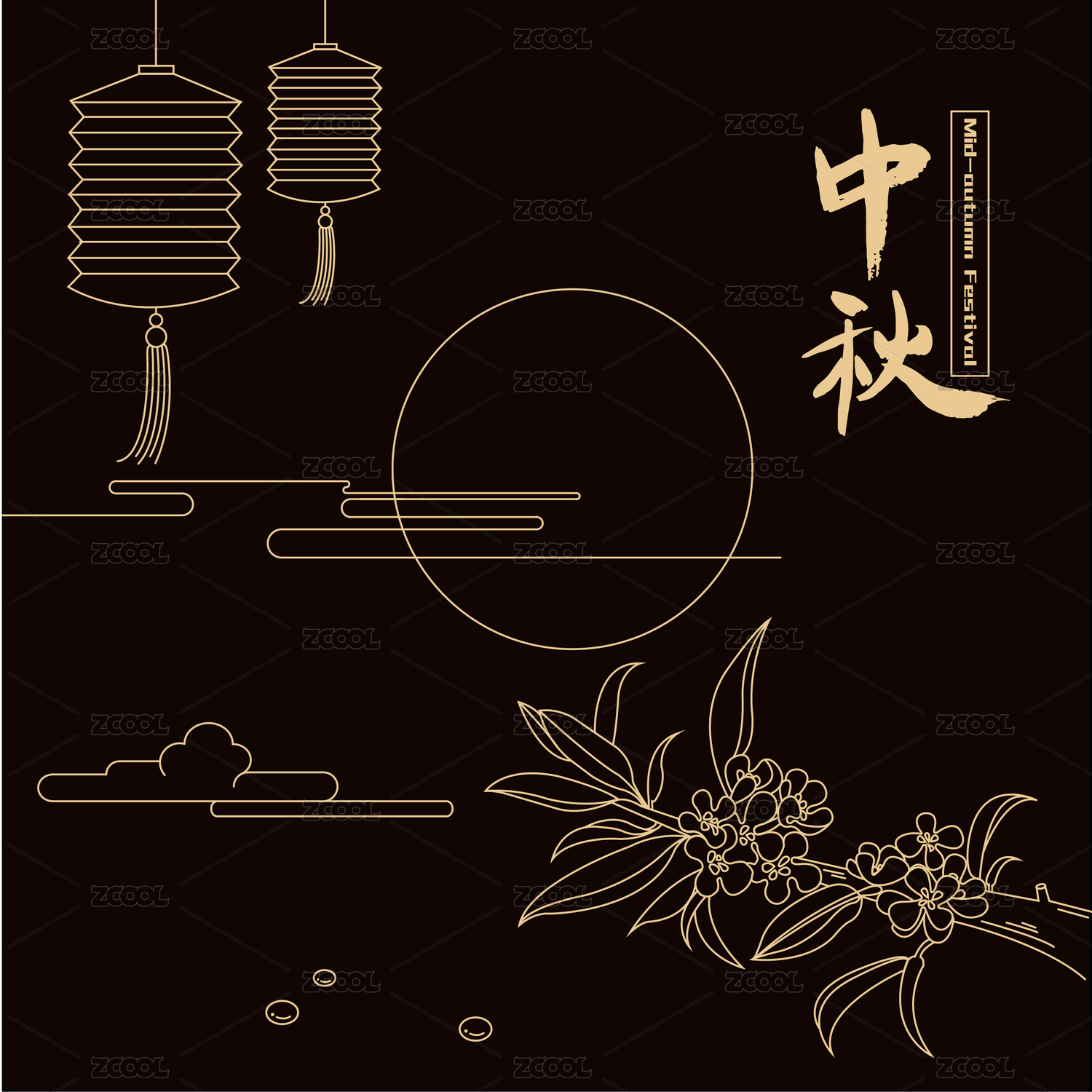 中秋矢量插画传统灯笼祥云素材