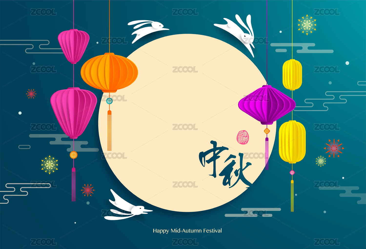 中秋节 灯笼和月兔