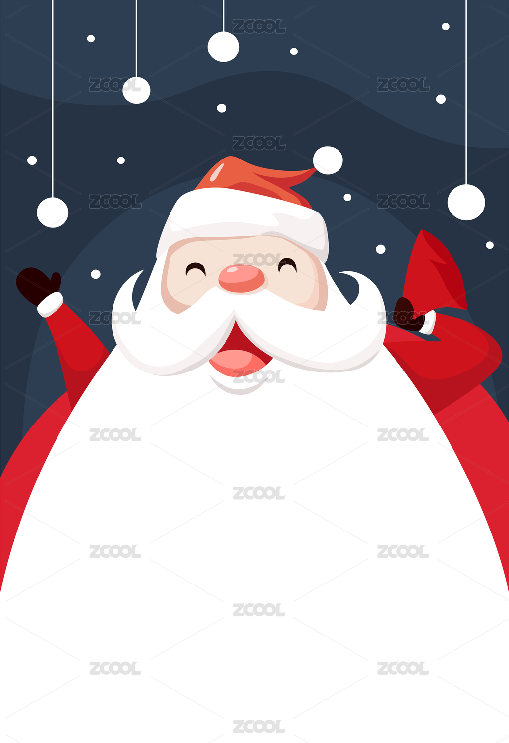 圣诞节矢量插画雪花蓝色背景圣诞老人举双手