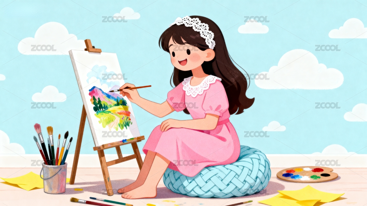 绘画,画画,小女孩,女孩,人物,小朋友,学画,学画画,画板,画家
