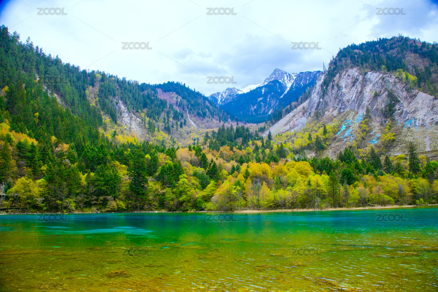 四川省阿坝九寨沟-蓝天下的湖光山色