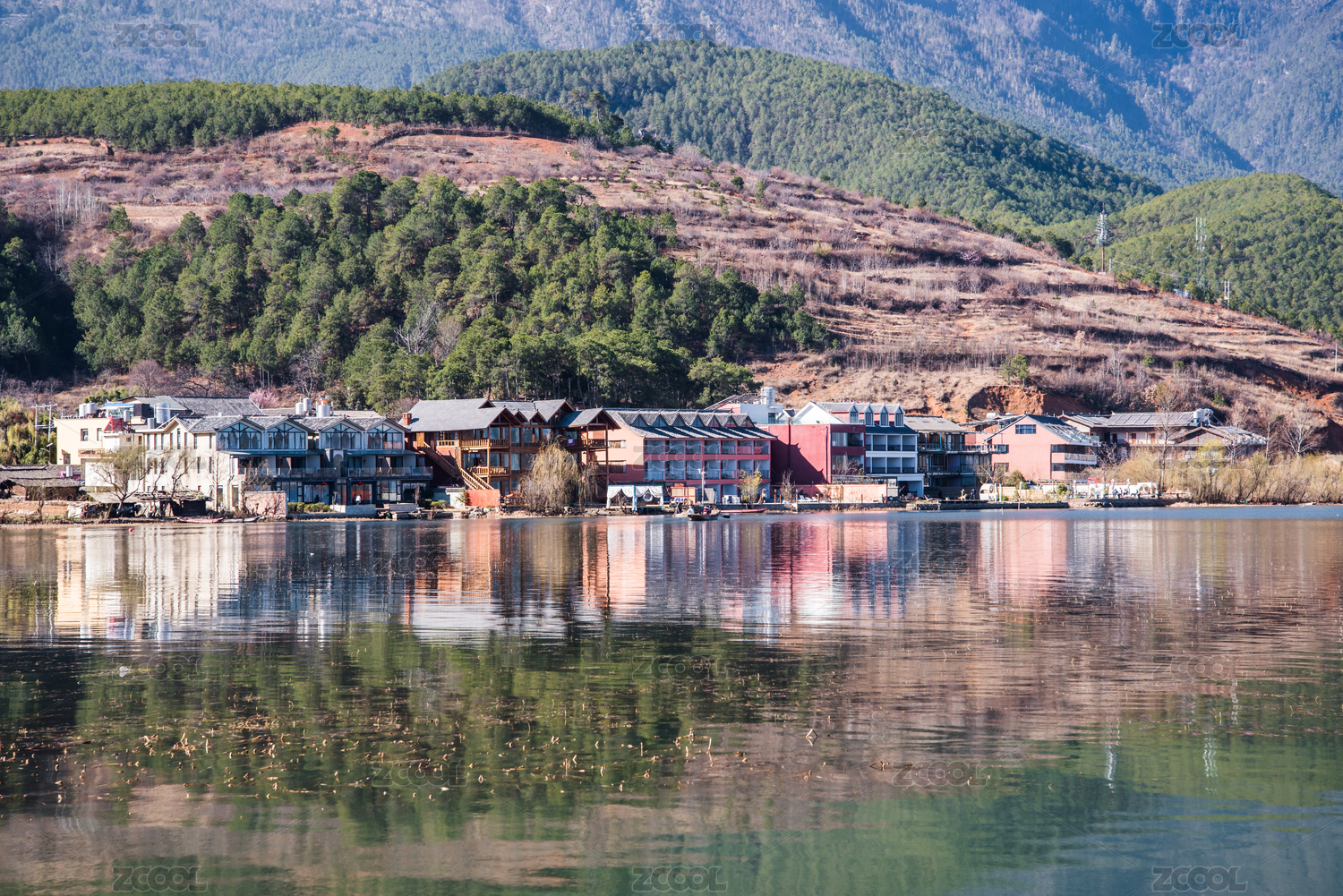 四川盐源县与云南宁蒗县交界泸沽湖秋冬景色