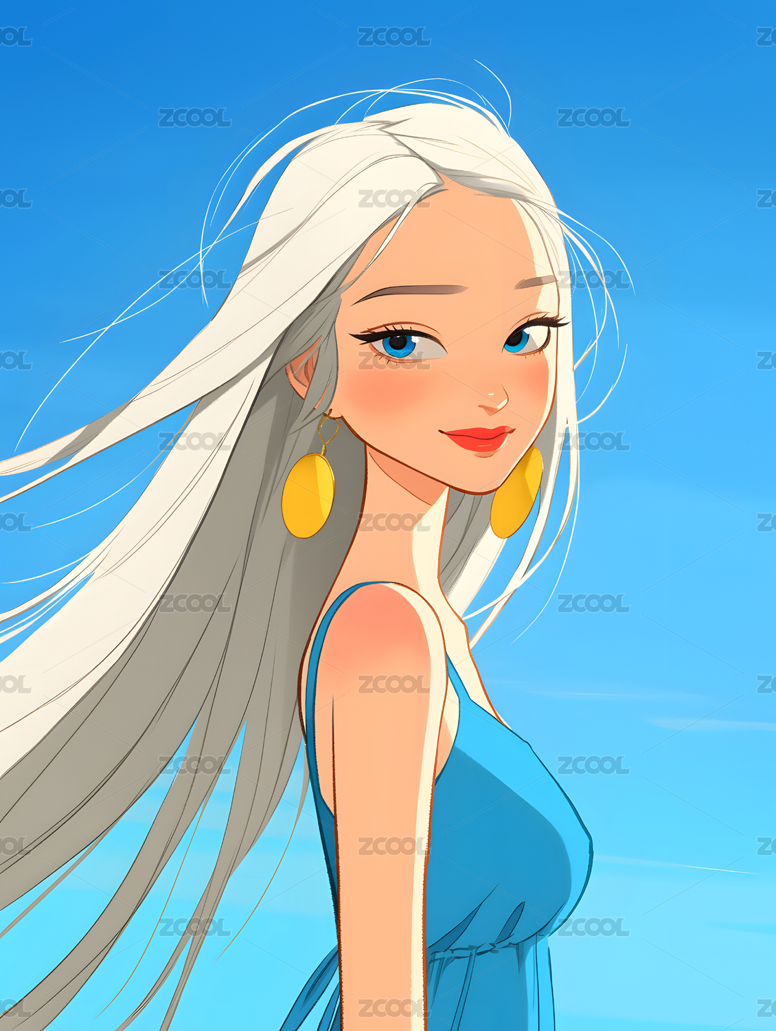 艺术,黄色,插画,简约,风格,人物,女性,肖像,金色,蓝色