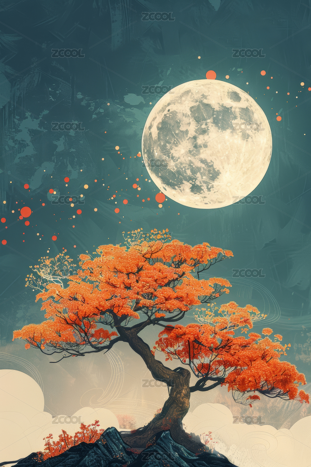插画,艺术,AI数字艺术,背景,壁纸,绘画,创意,树,橙子,星球