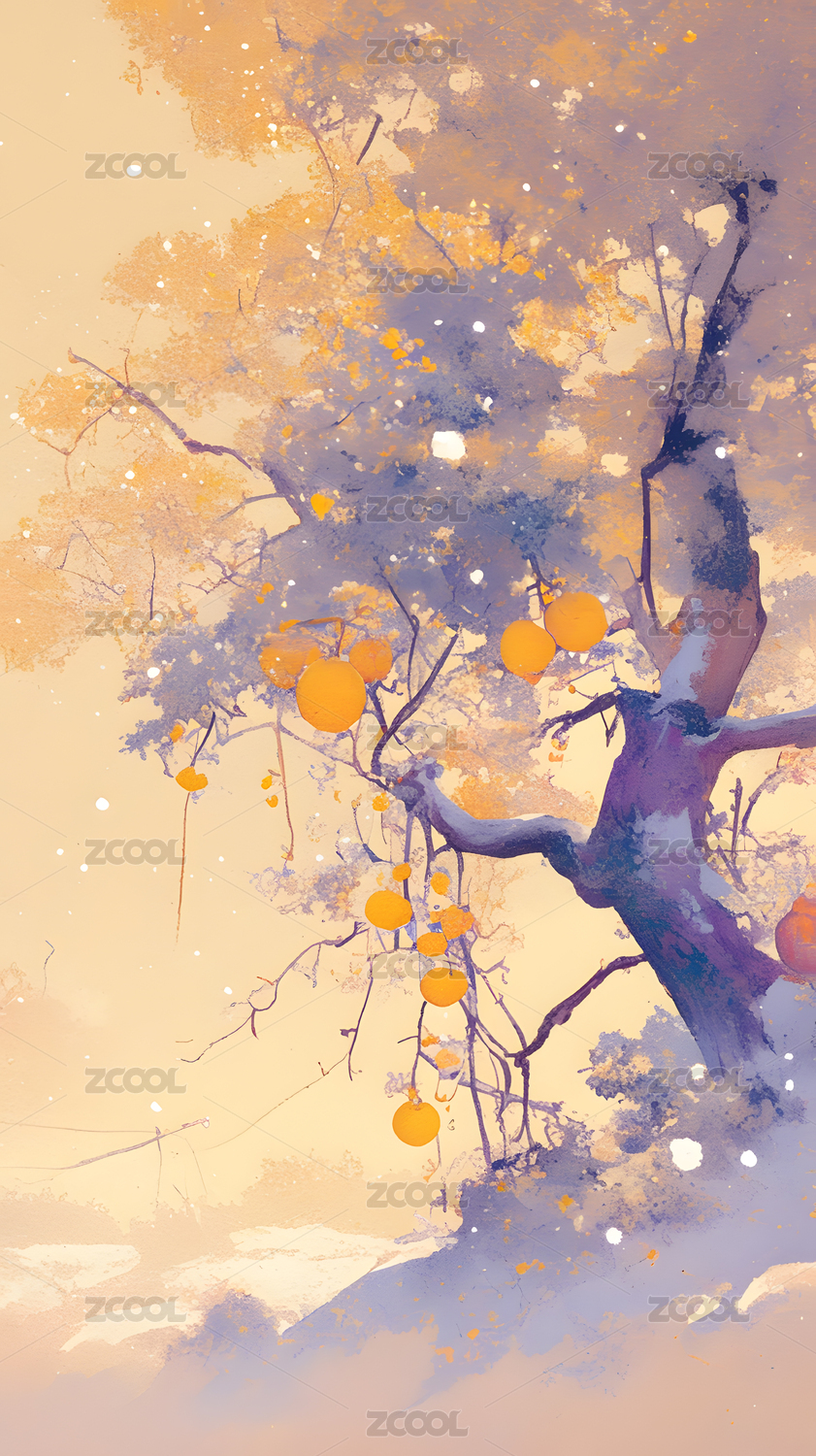 秋天柿子树霜降节气节日清新中国风风景壁纸