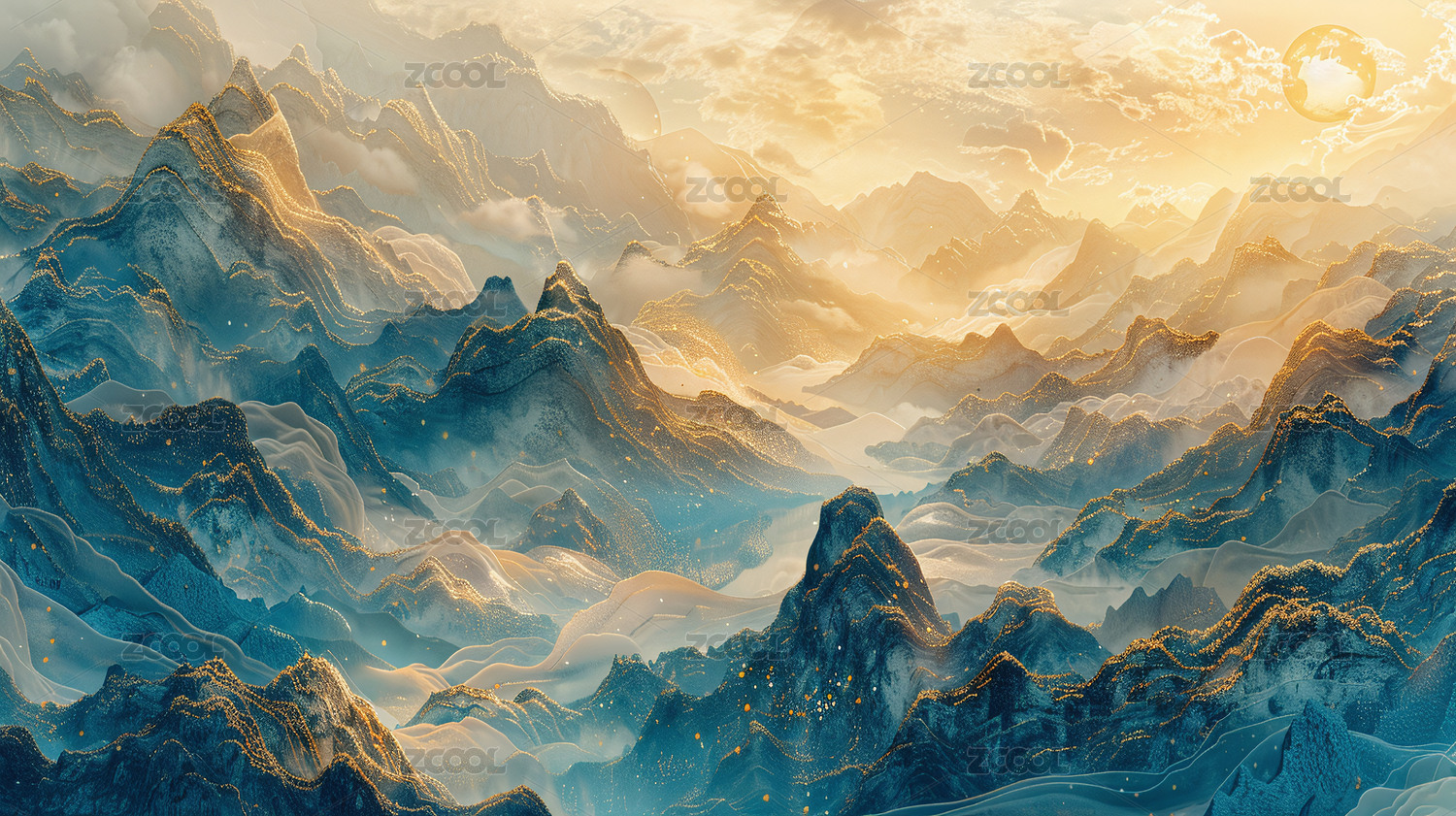梦幻山峦金色夕阳