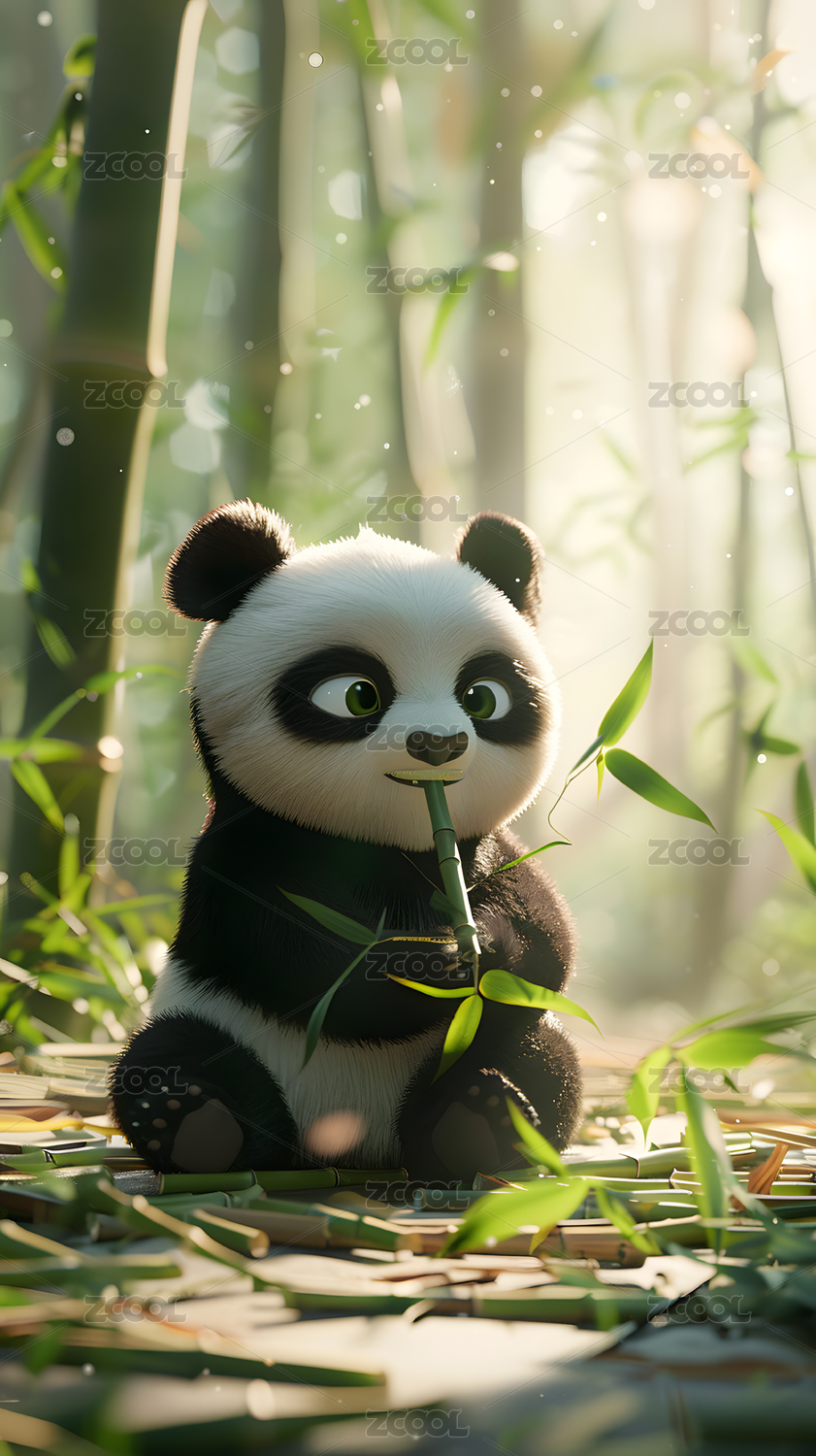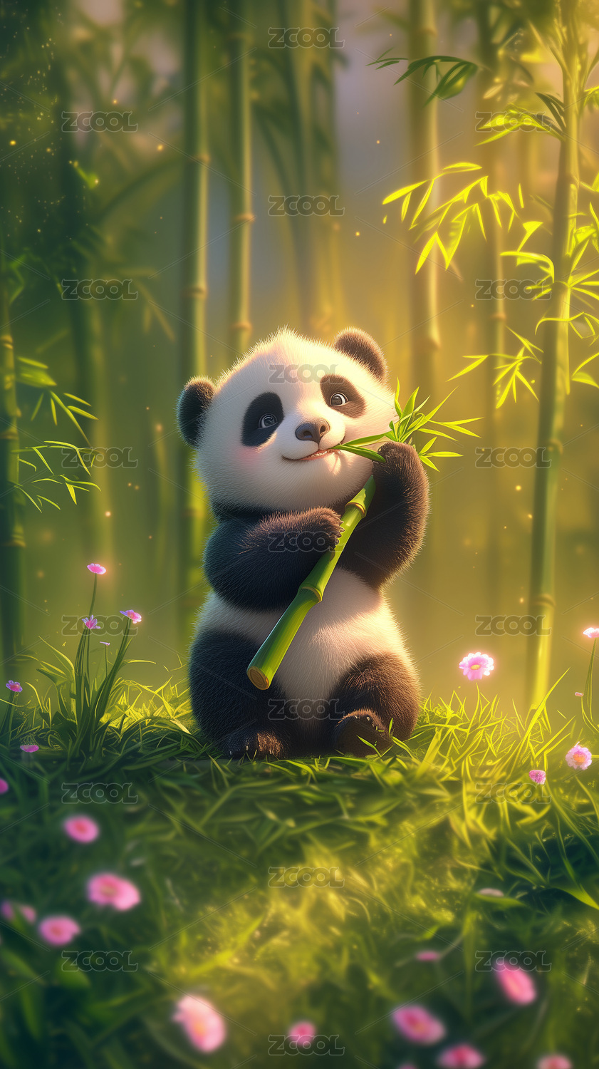 可爱治愈野外竹林的国宝大熊猫3D卡通插画