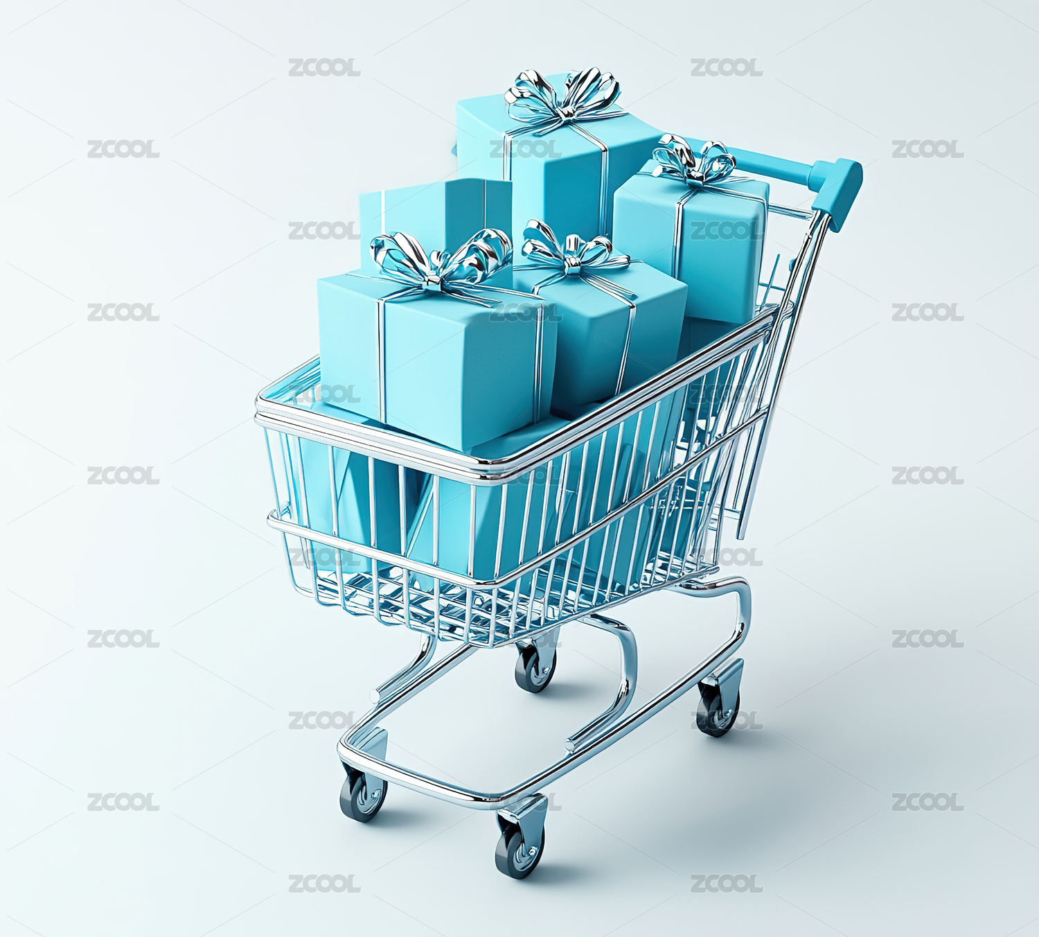 3D立体建模装着礼盒的购物车