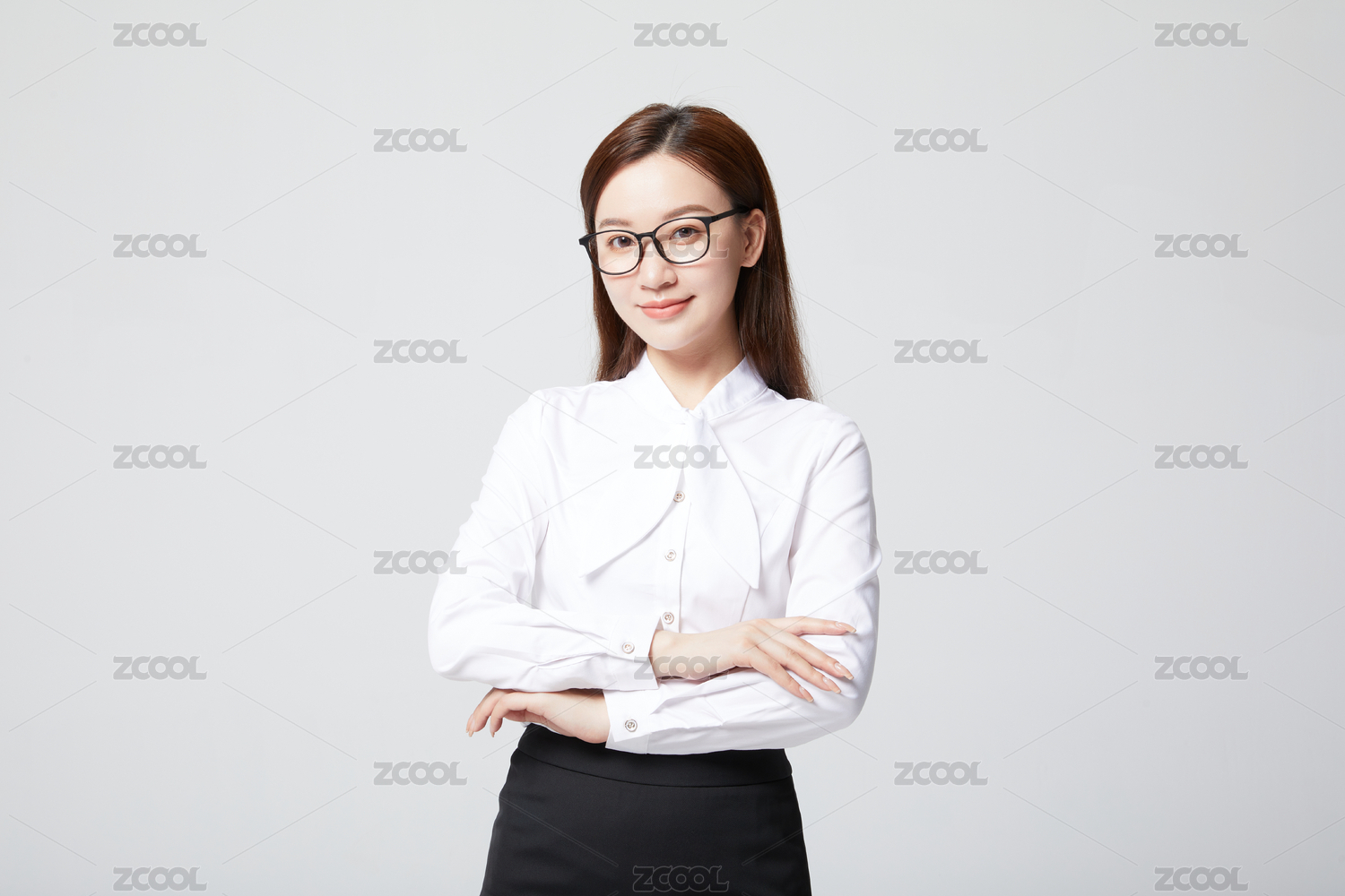 影棚拍摄白色背景亚洲年轻女性商务人像