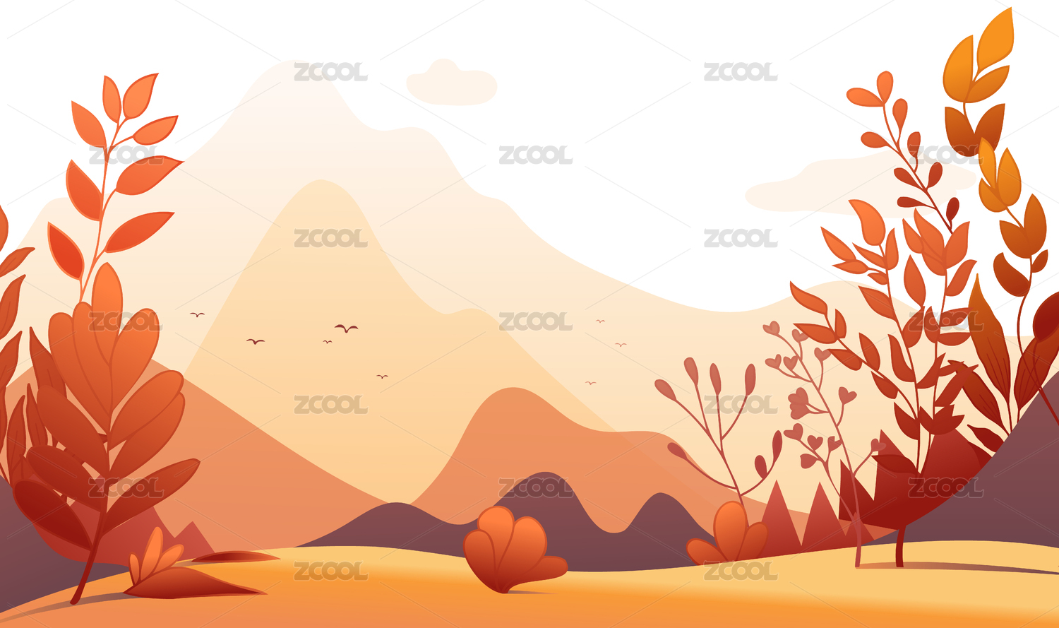 橙色植物自然背景插图