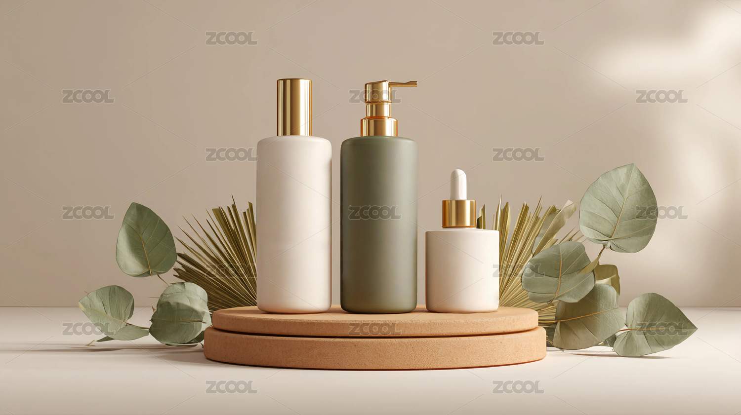3D电商,化妆品,植物插画,背景,产品场景