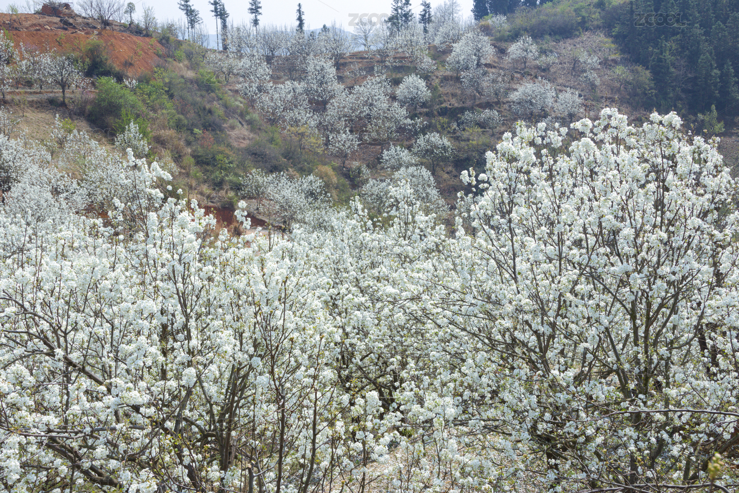 湖南省怀化市靖州排牙山梨花盛开美丽景象