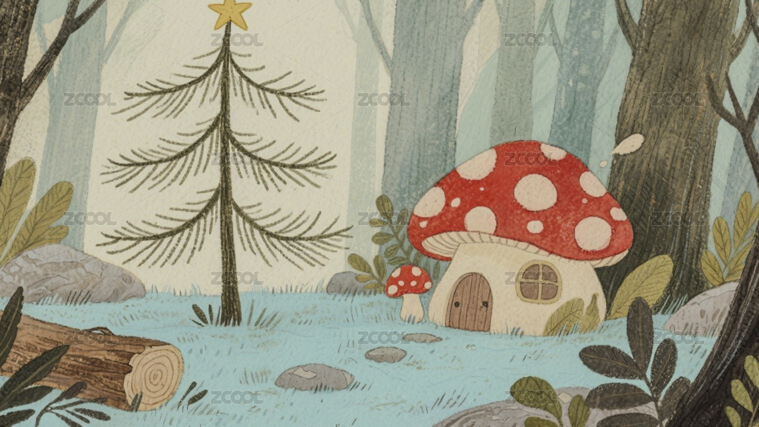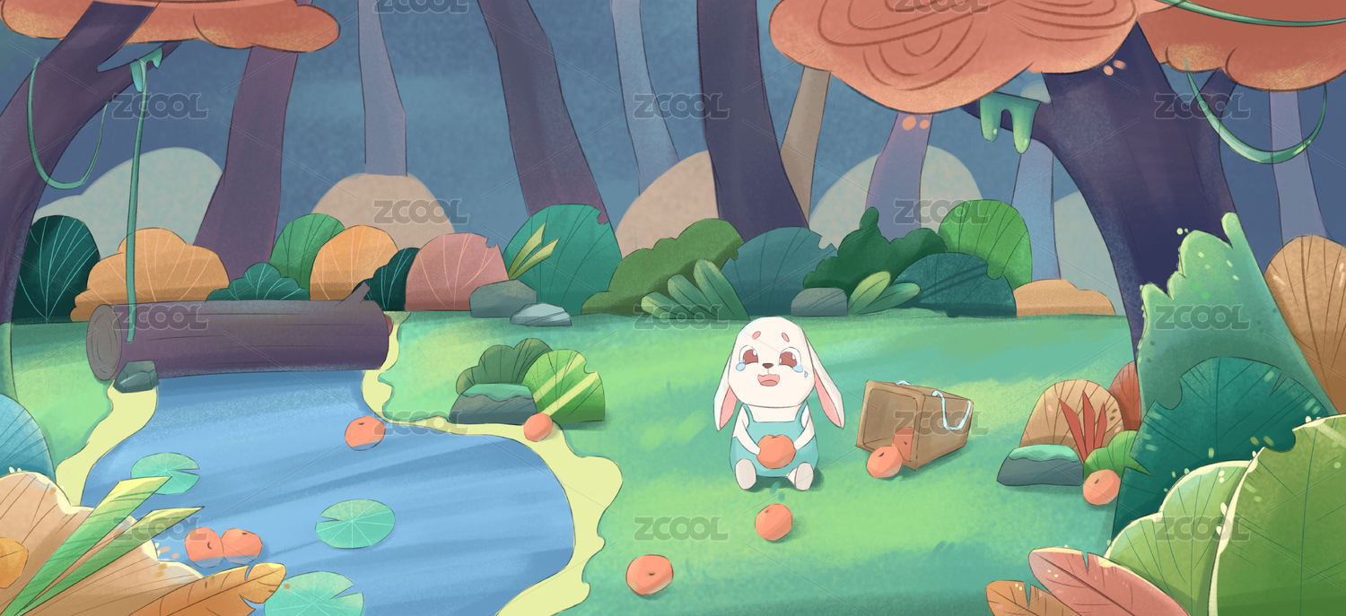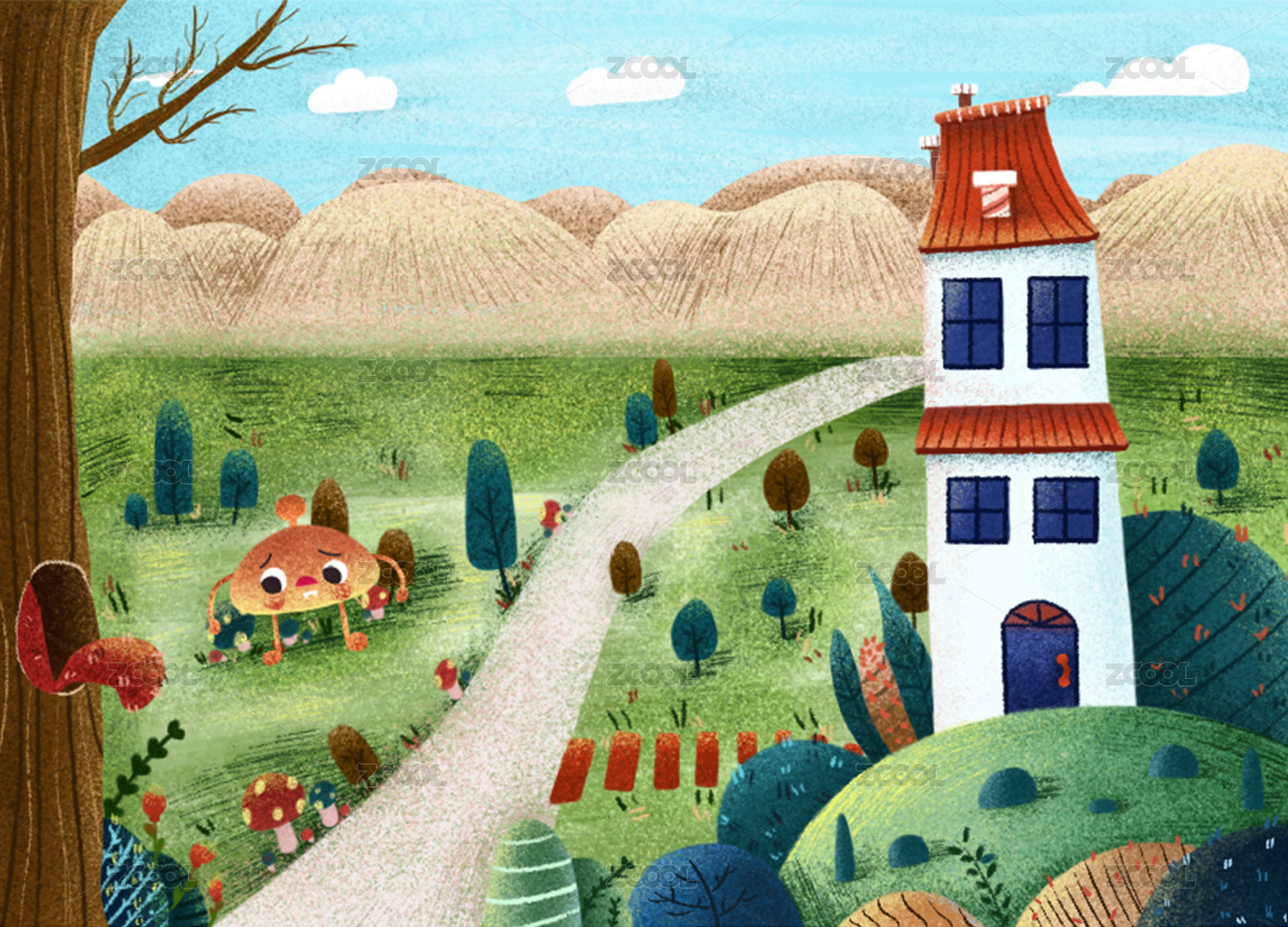 绿色的树林和花草,儿童绘本,卡通风景插画