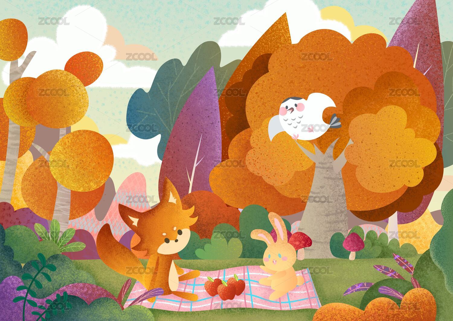 儿插,儿童插画,插画,绘本,森林,熊,困,打哈欠,花草树木,蜂蜜