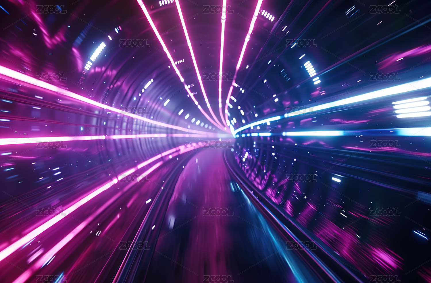 霓虹灯科幻线条数据未来高科技虚拟现实隧道
