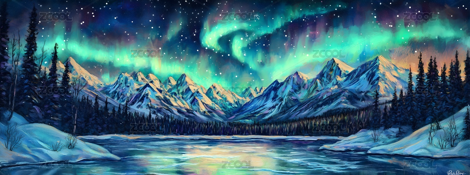极光夜空下的冰雪山河