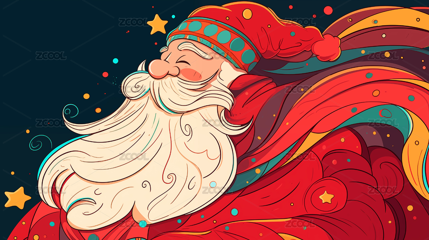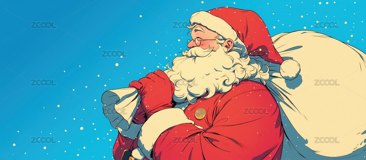 圣诞节卡通圣诞老人红色贺卡插画背景