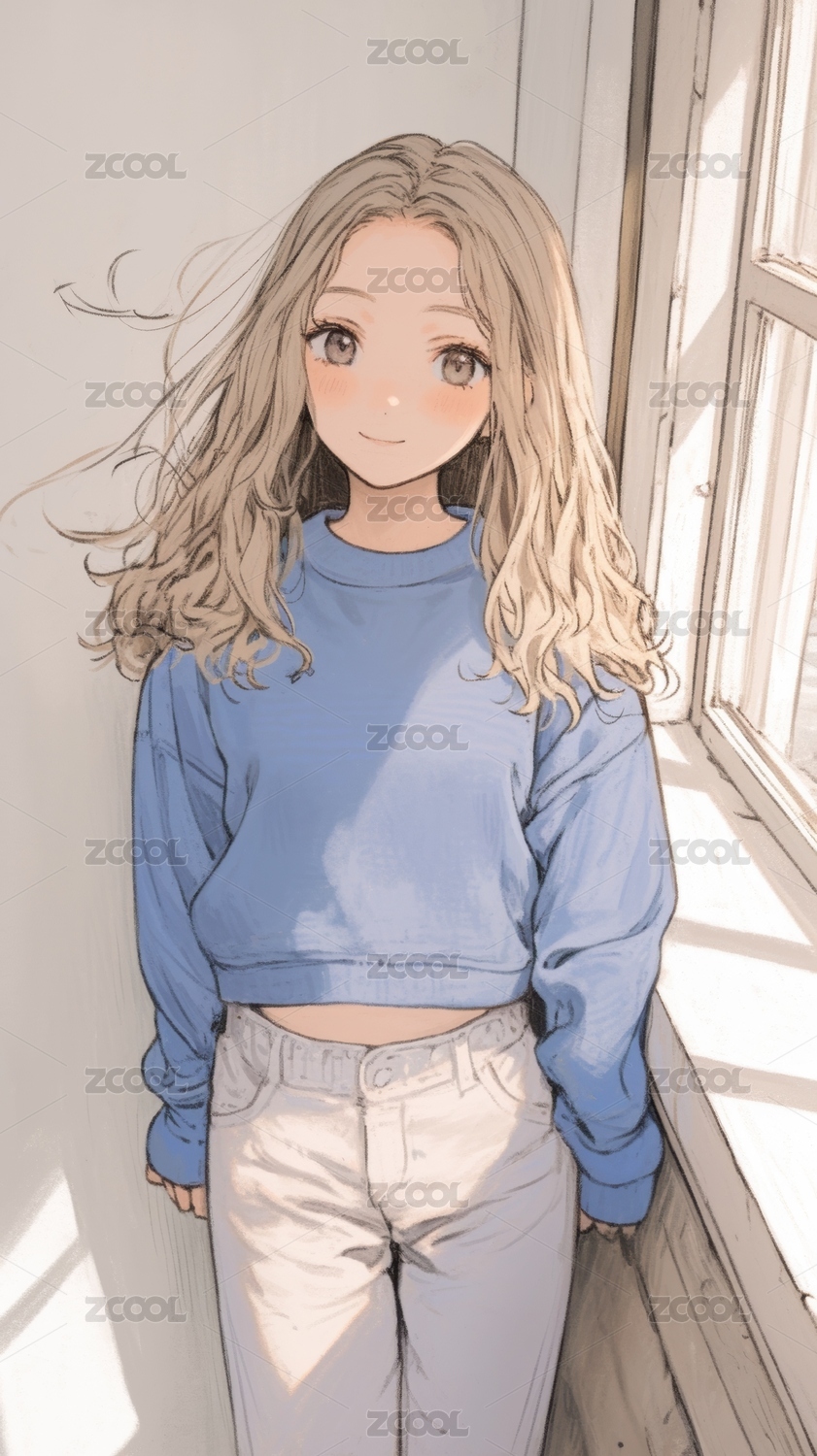 卫衣,牛仔裤,女人,少女,时尚,可爱,运动,休闲,插画