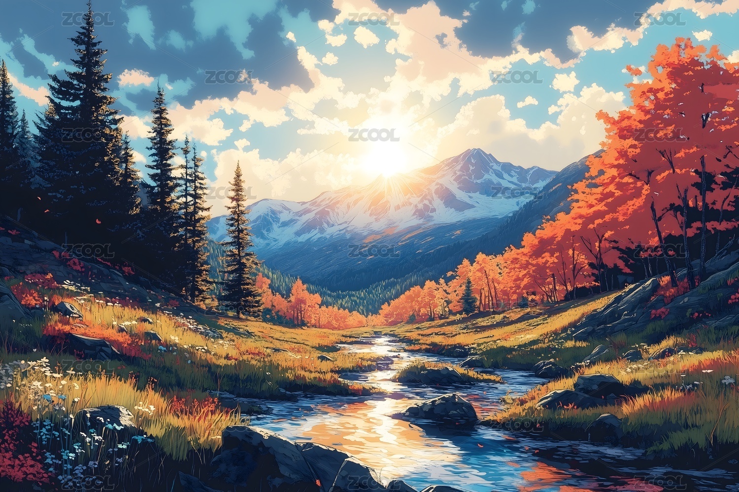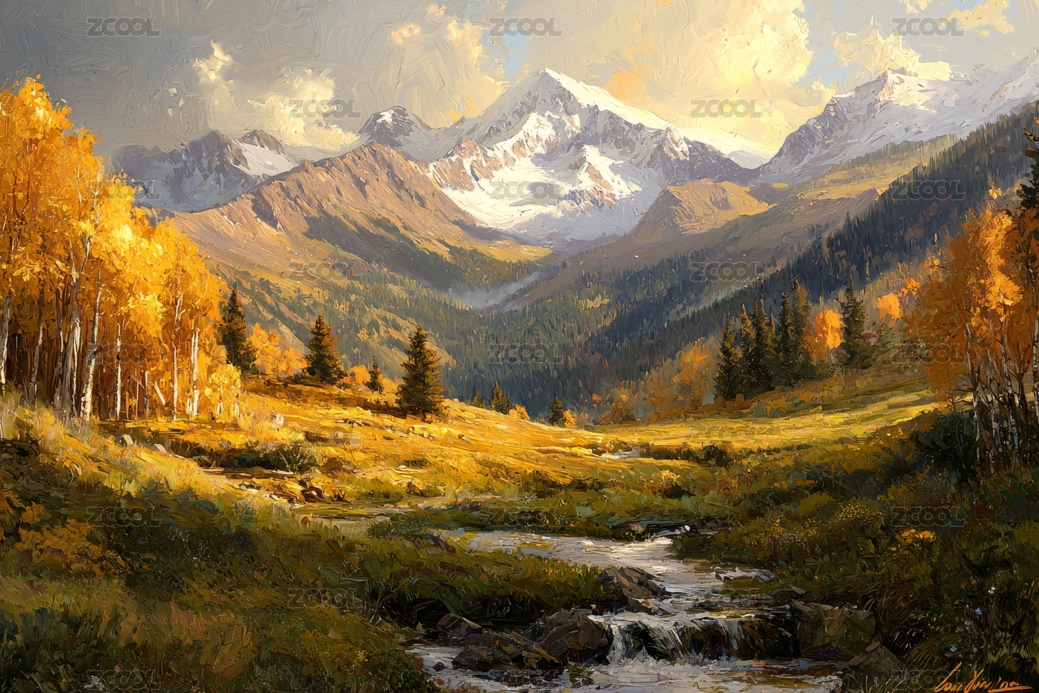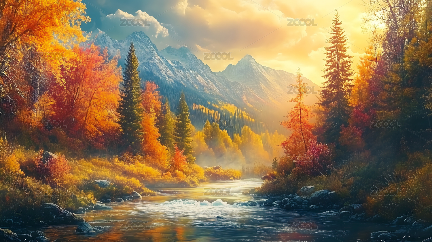 秋天, 树木, 橙色, 金色, 自然, 宁静, 雪山, 风景, 山, 溪流