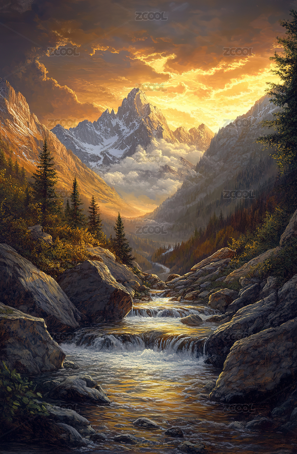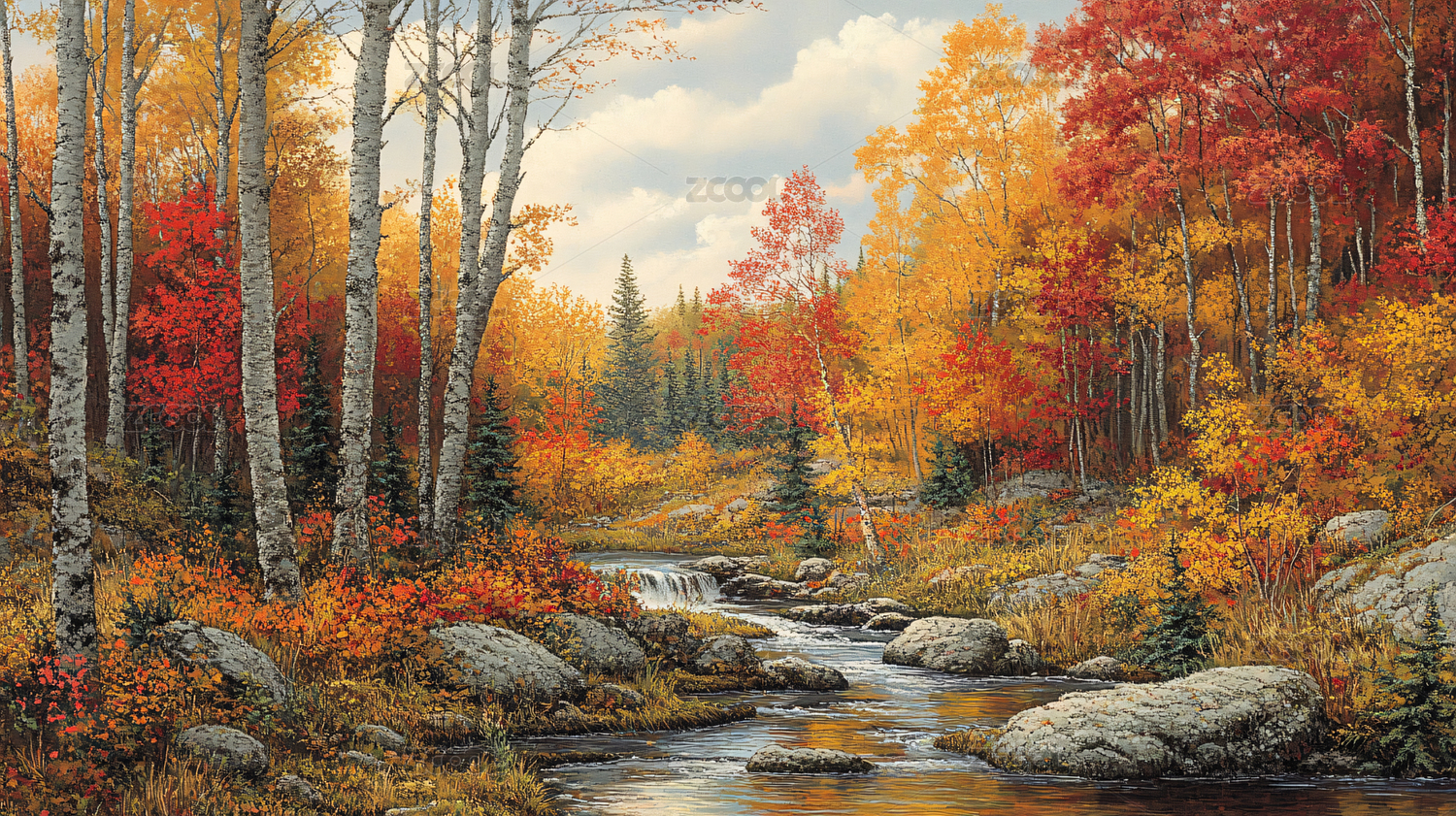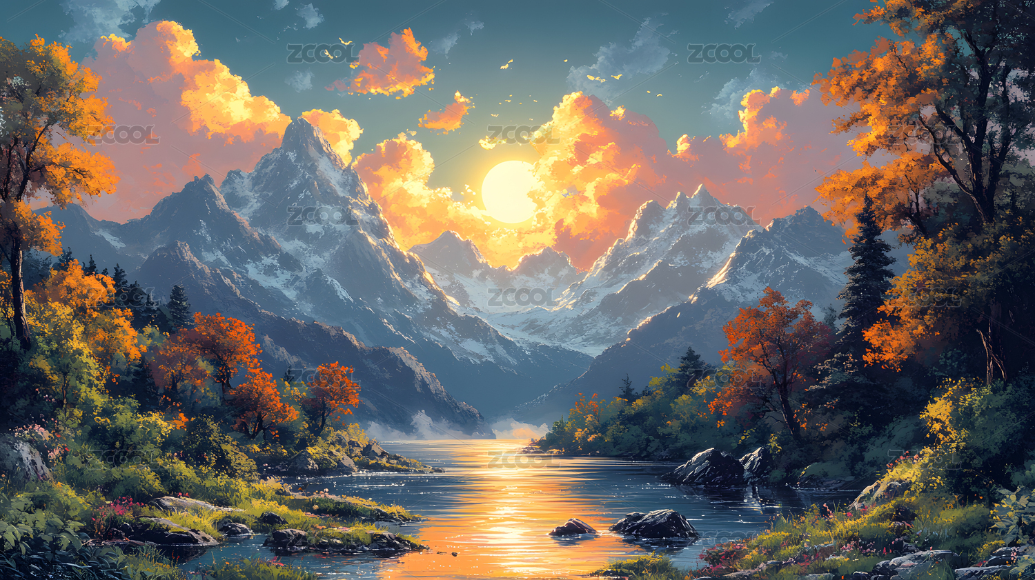 秋天, 树木, 橙色, 金色, 自然, 宁静, 雪山, 风景, 山, 溪流