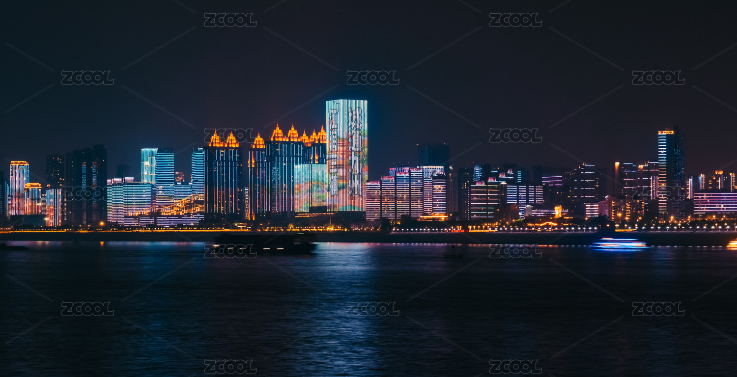 上海浦东滨江大道江景外滩万国建筑群夜景