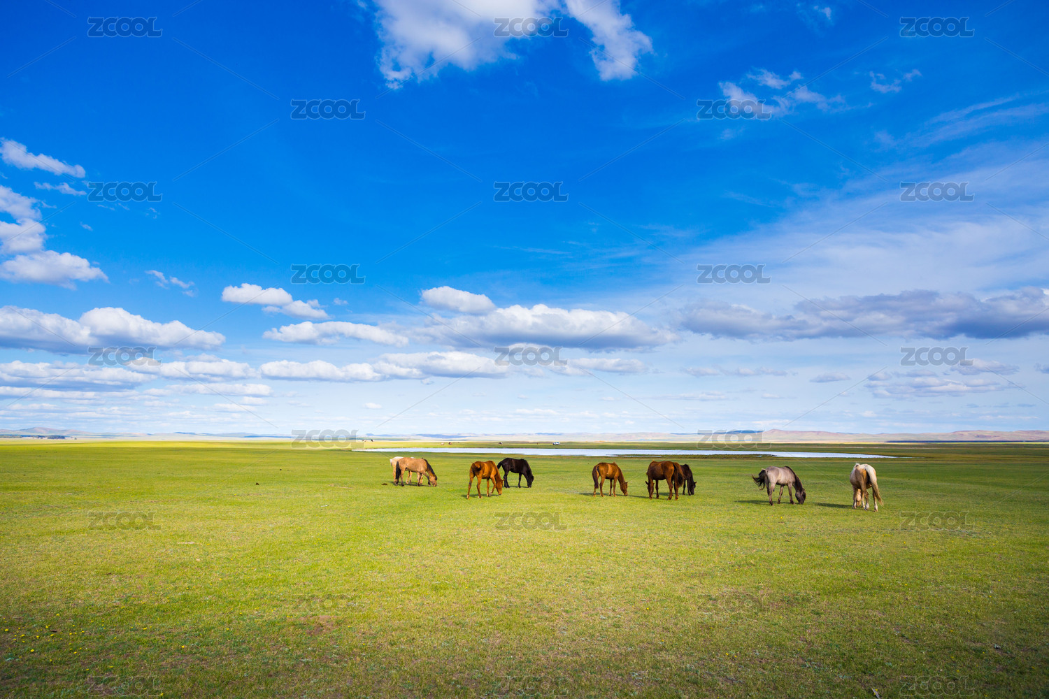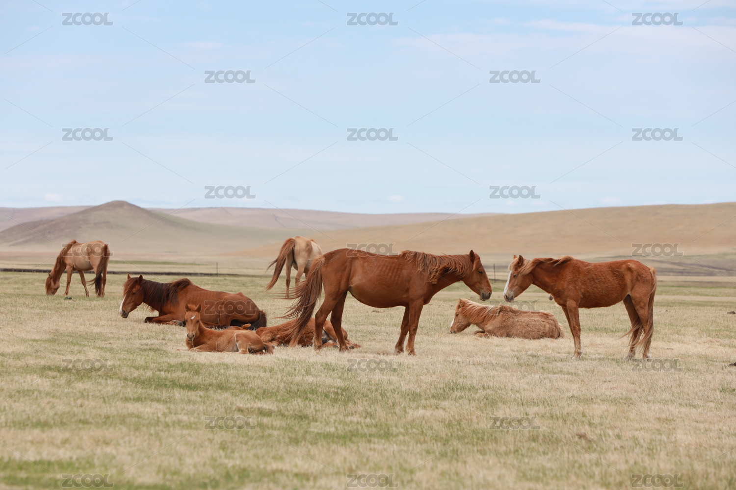 河北省沽源县库伦淖尔景区清晨的草原牧马