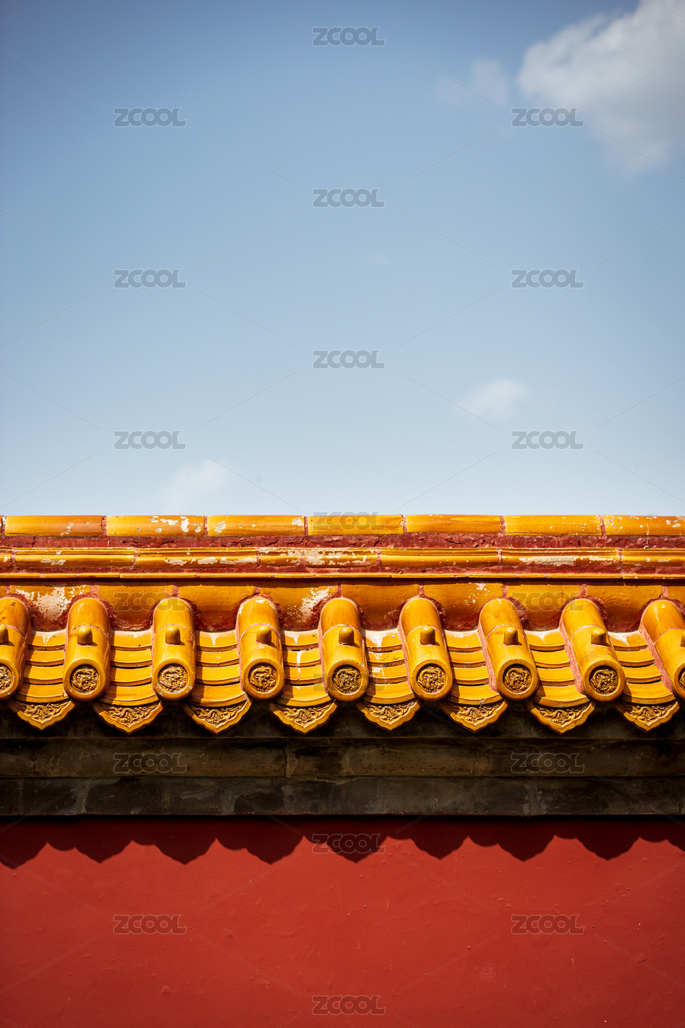 蓝天下的北京中山公园宰牲亭屋顶房檐特写