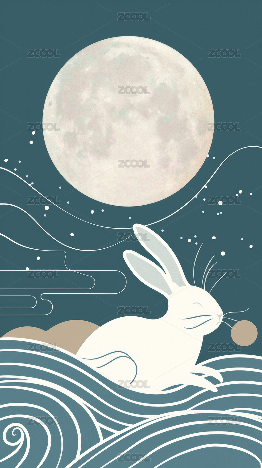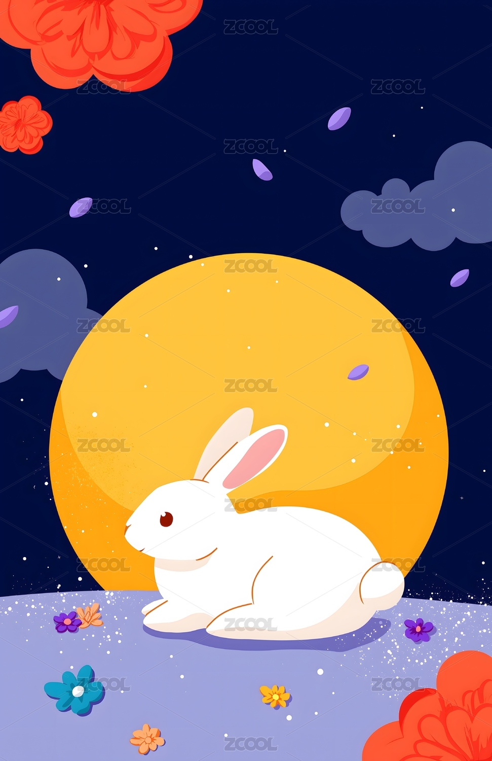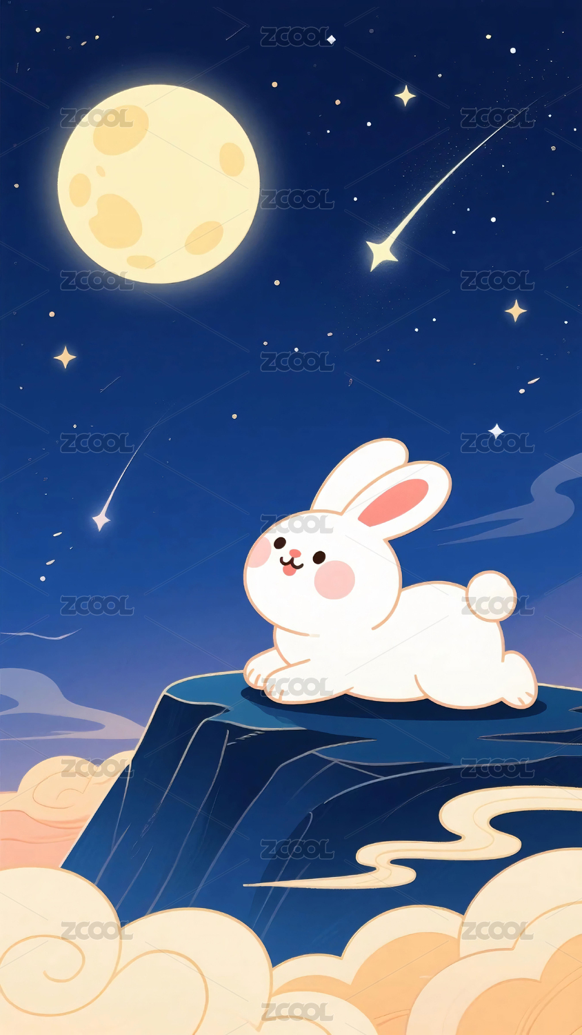 月满中秋节日玉兔愉快地赏月氛围感美景