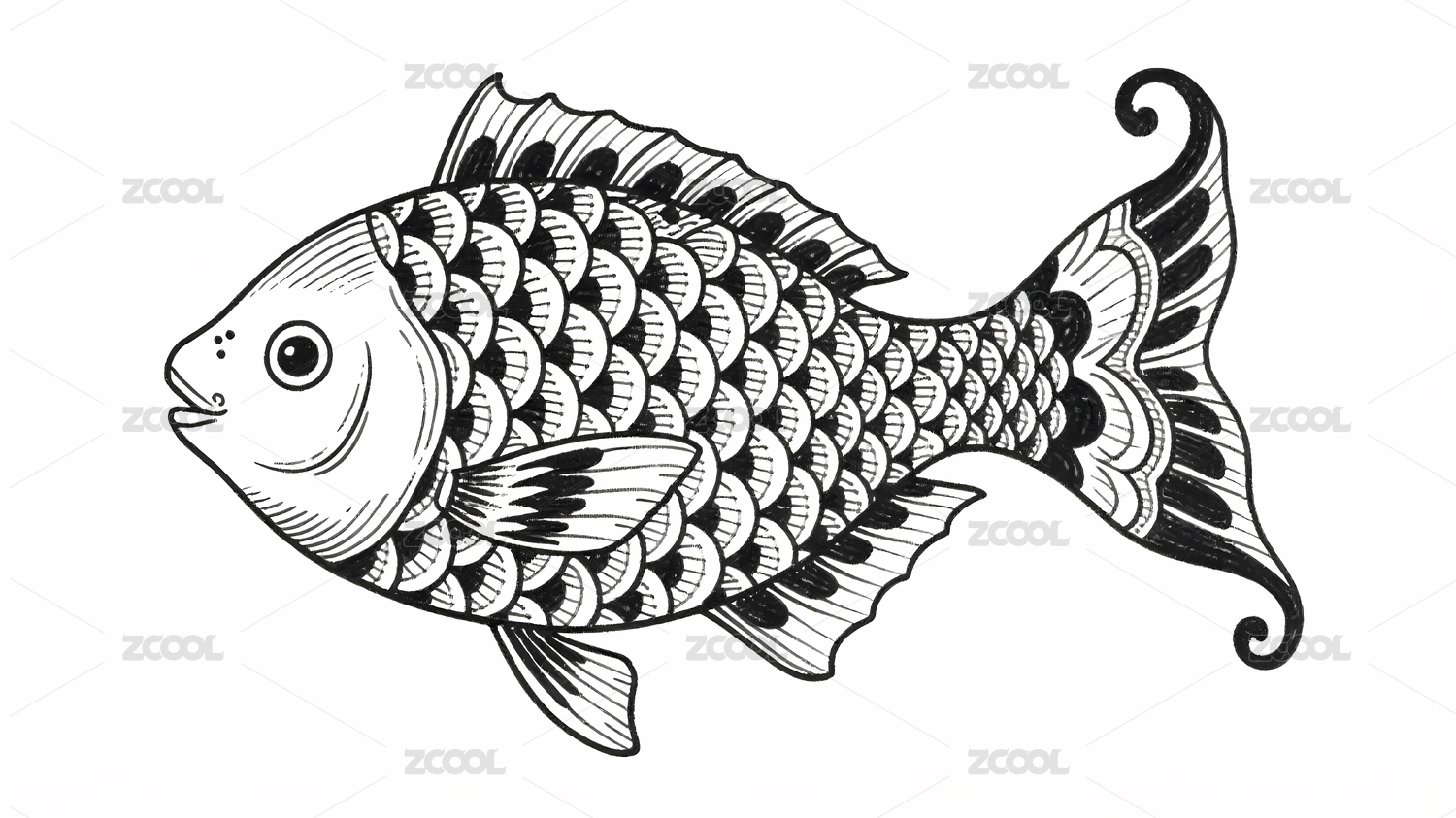 鱼,鱼类,鱼肉,线稿,手绘,草图,速写,插画,元素,素描