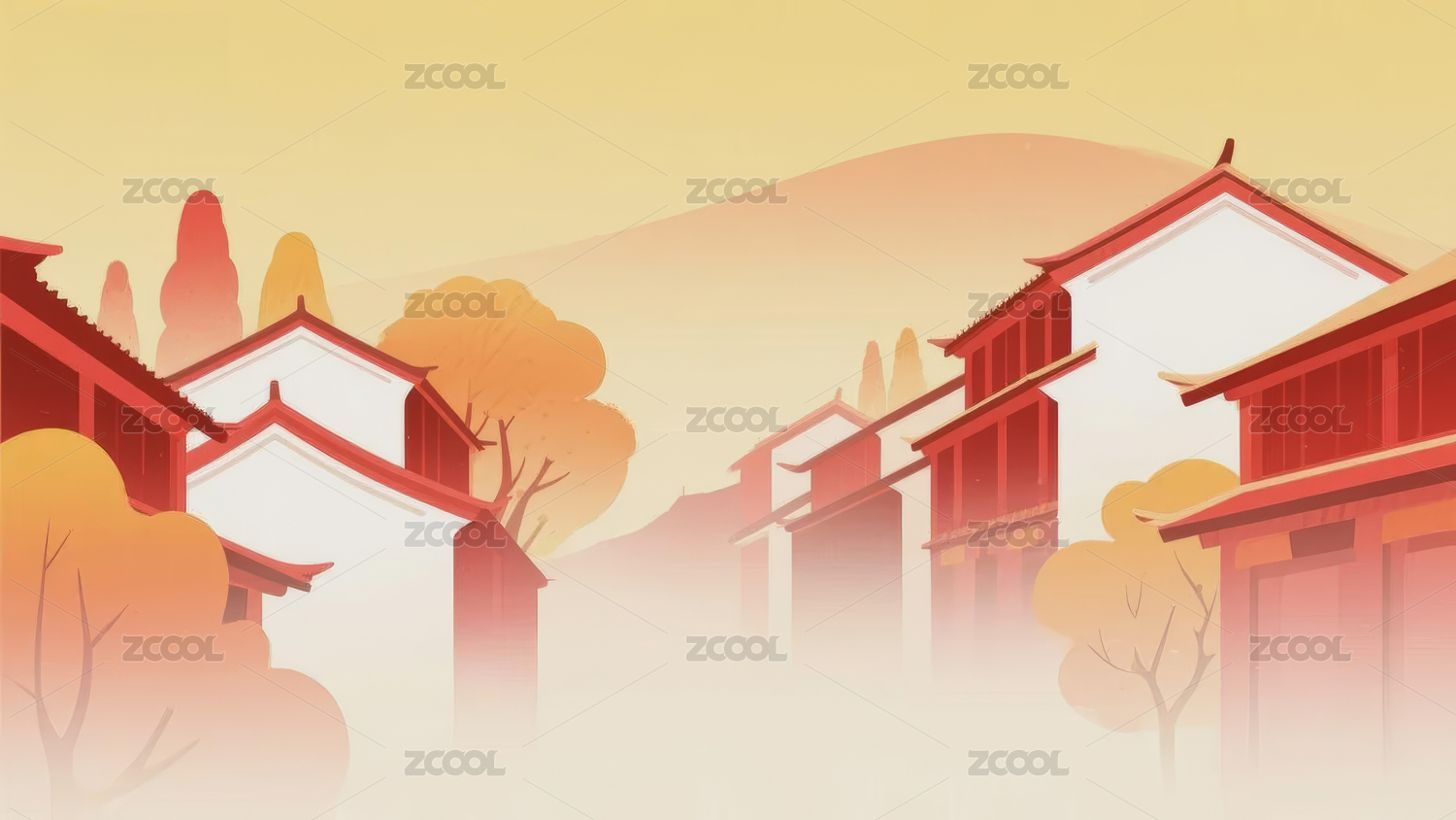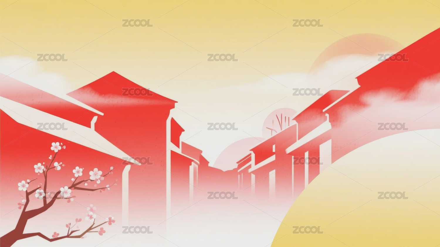 新年,新春,春节,中秋节,中国风,传统,祥云,村庄,建筑,热闹