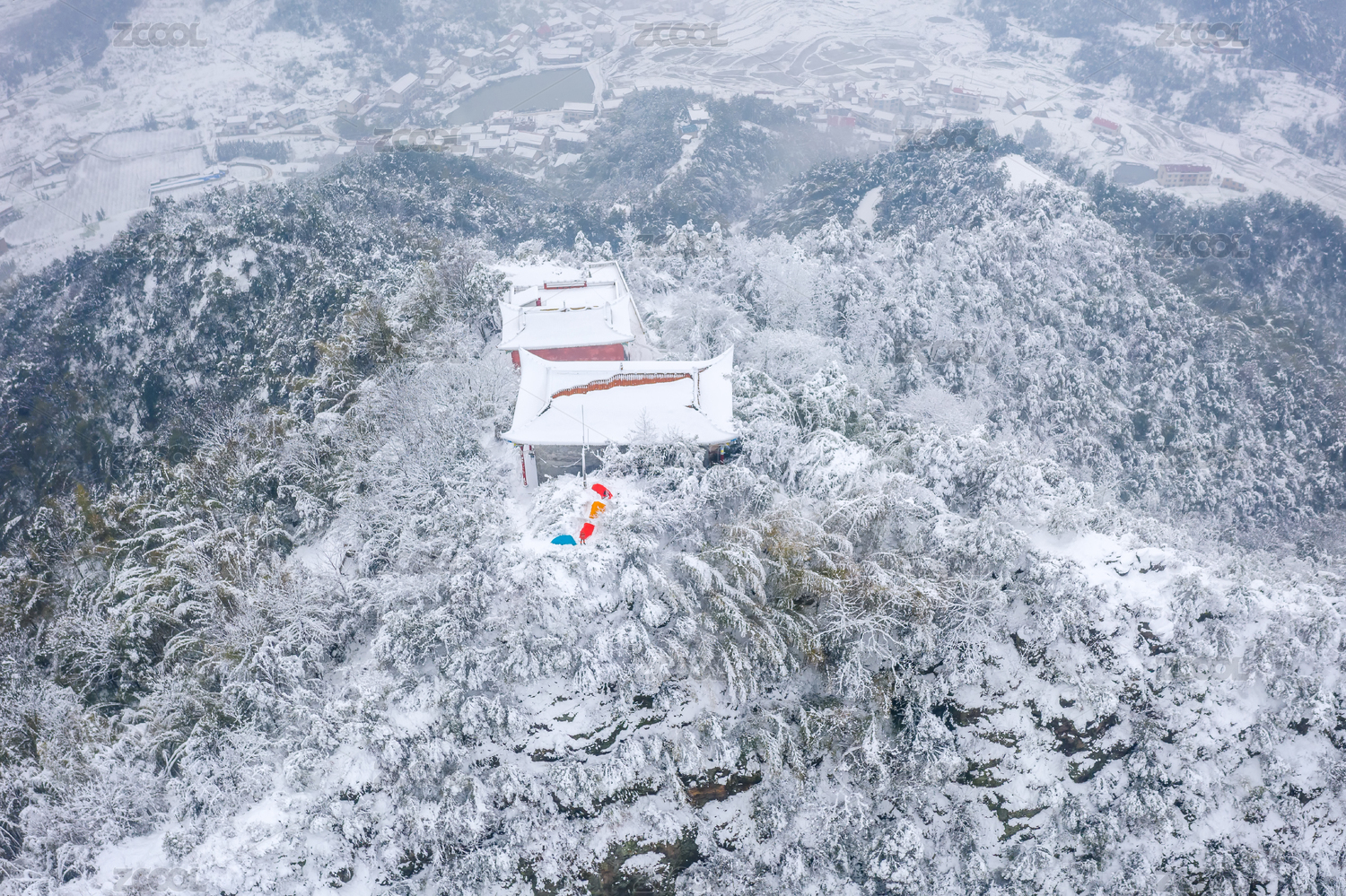 航拍庐山景区雪景