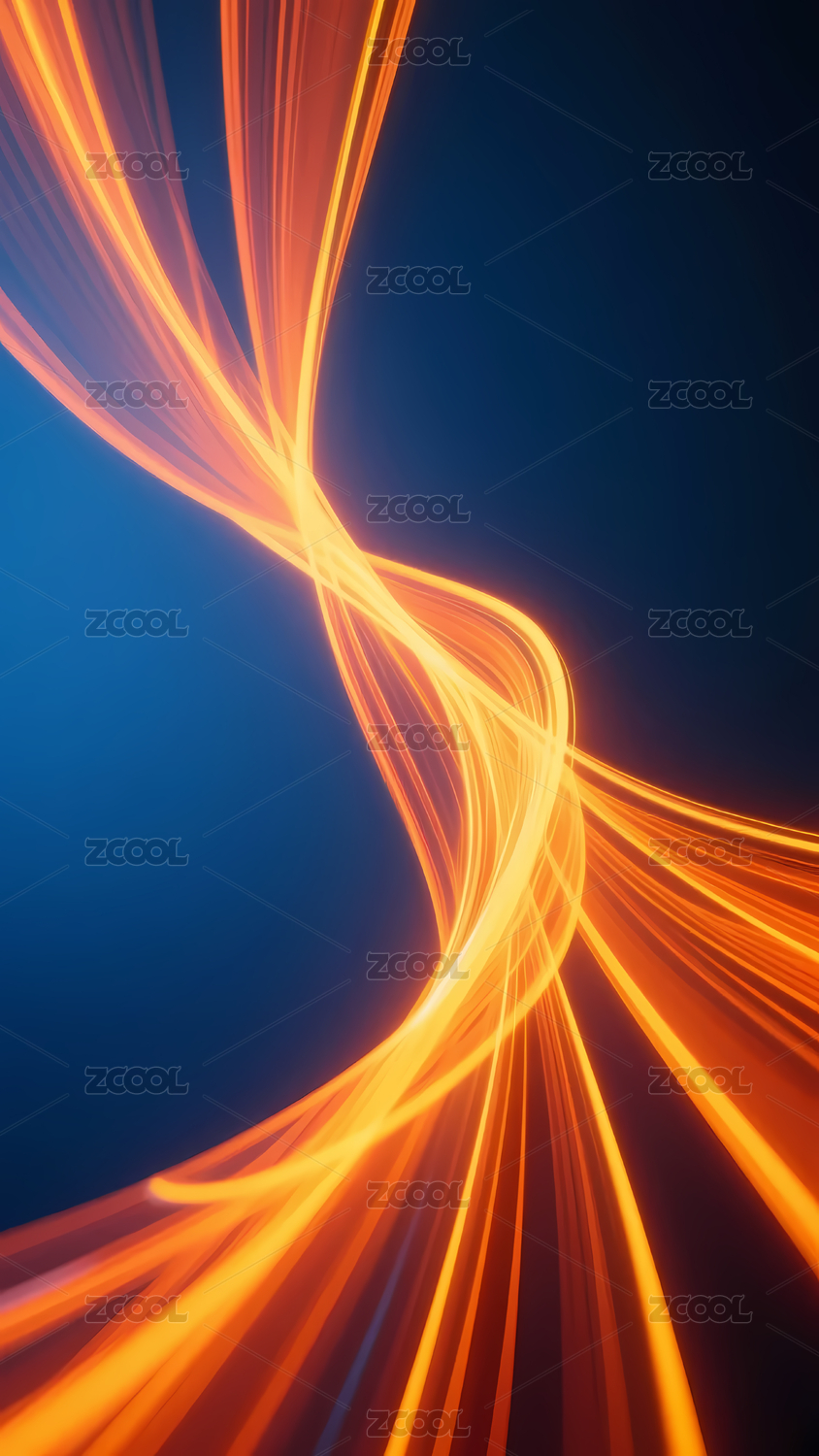 橘色流动光线光效商务科技主视觉背景