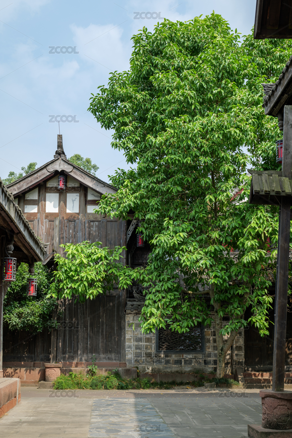 素材,背景,建筑,传统建筑,木结构,青瓦房,石板路,雨后,李庄古镇,千年古镇