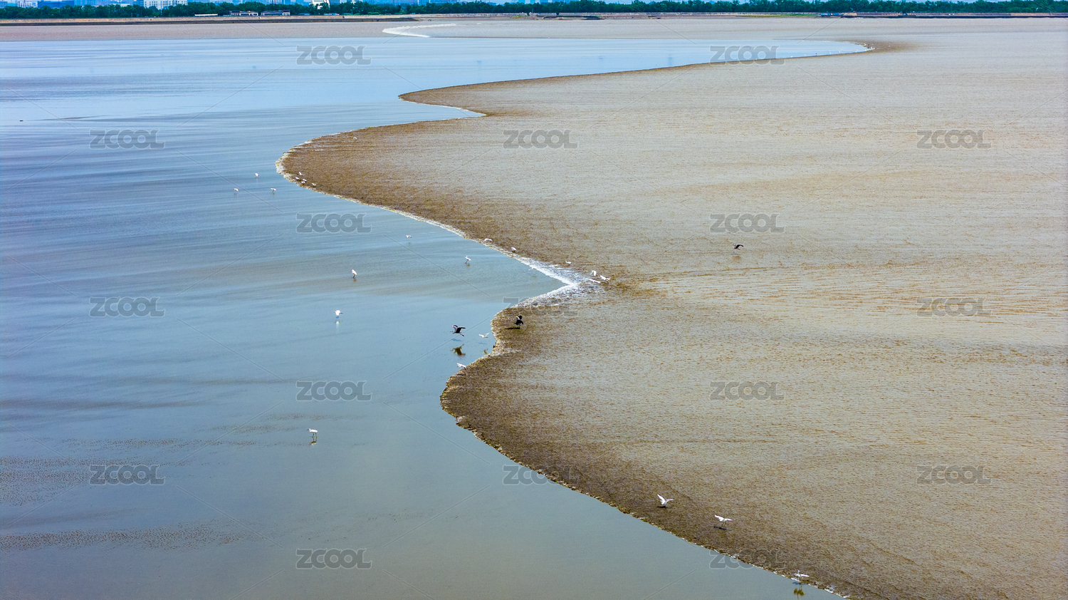 杭州钱塘江大江东滩涂湿地风光