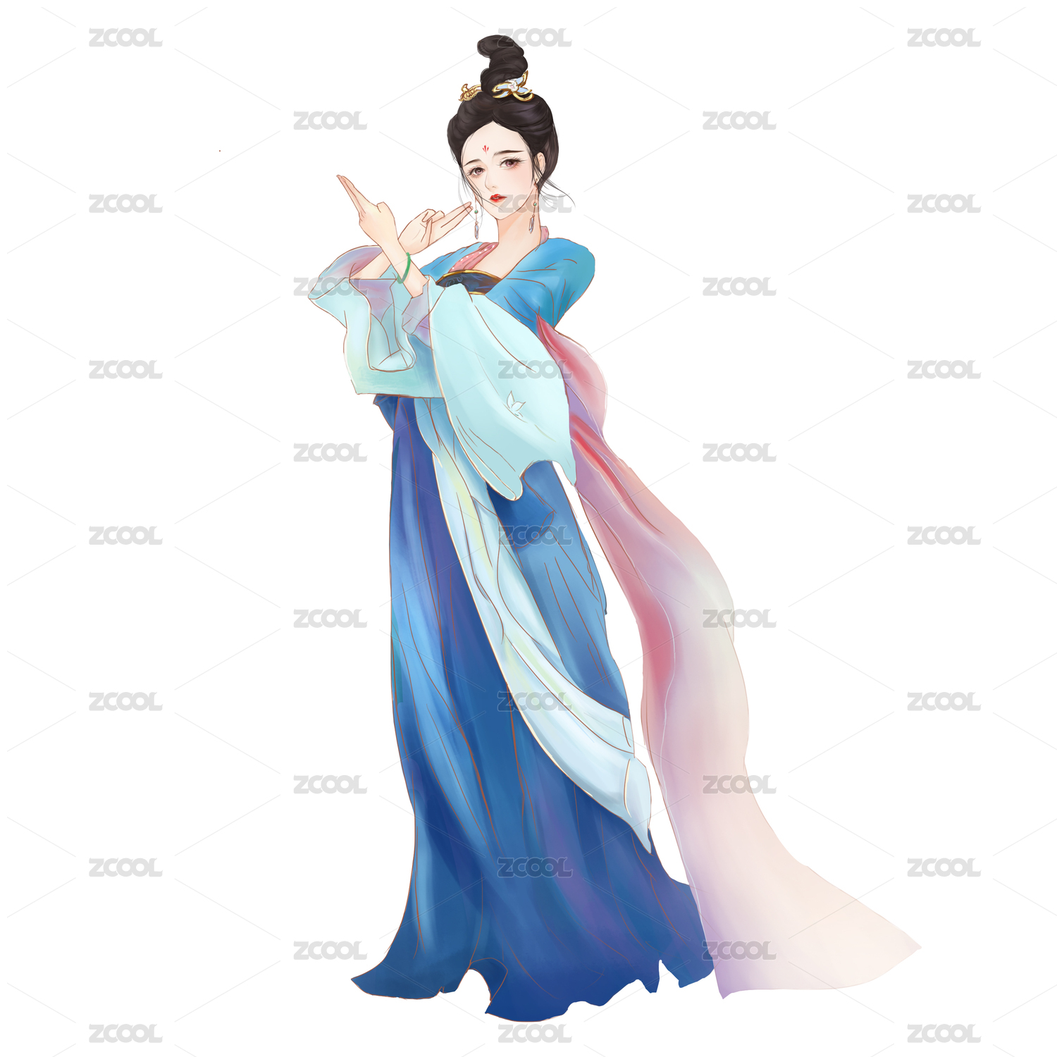 穿着古风汉服古装唐代襦裙转圈舞蹈女人