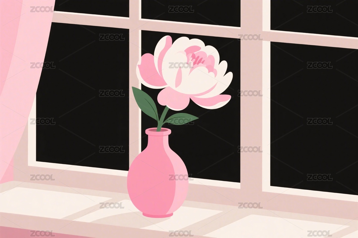 室内静物桌面花瓶装饰插画扁平风肌理竖幅