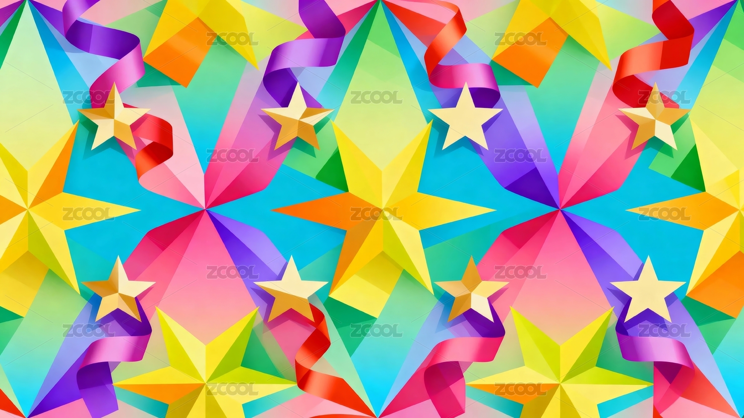 彩色星星与丝带图案