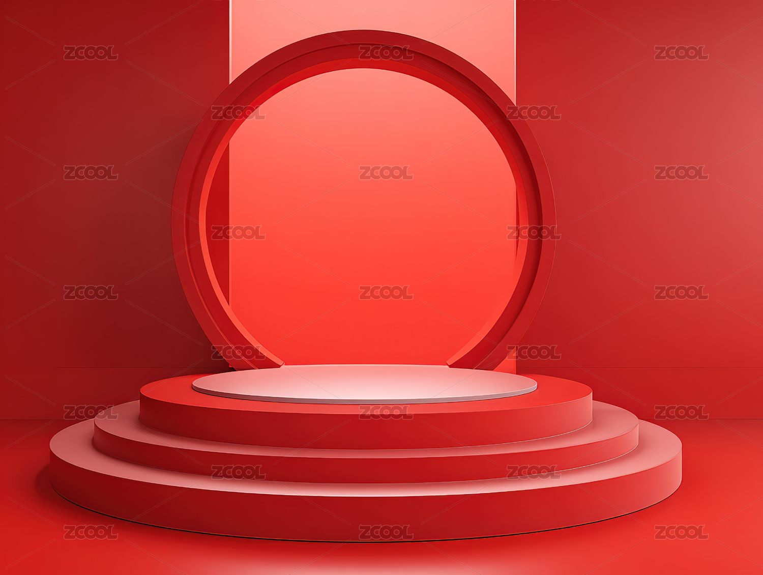 红色圆形舞台与拱门背景