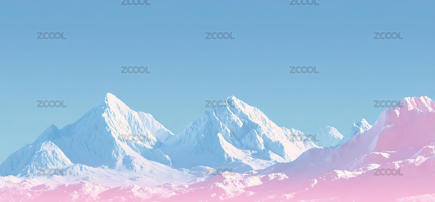 白雪皑皑的群山在晴朗的天空中俯瞰