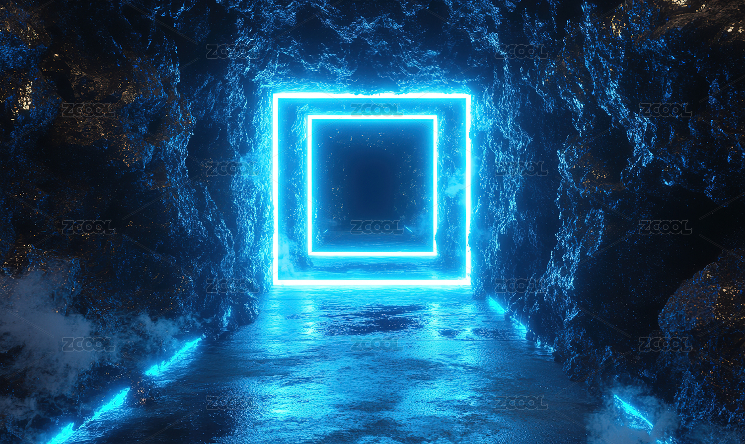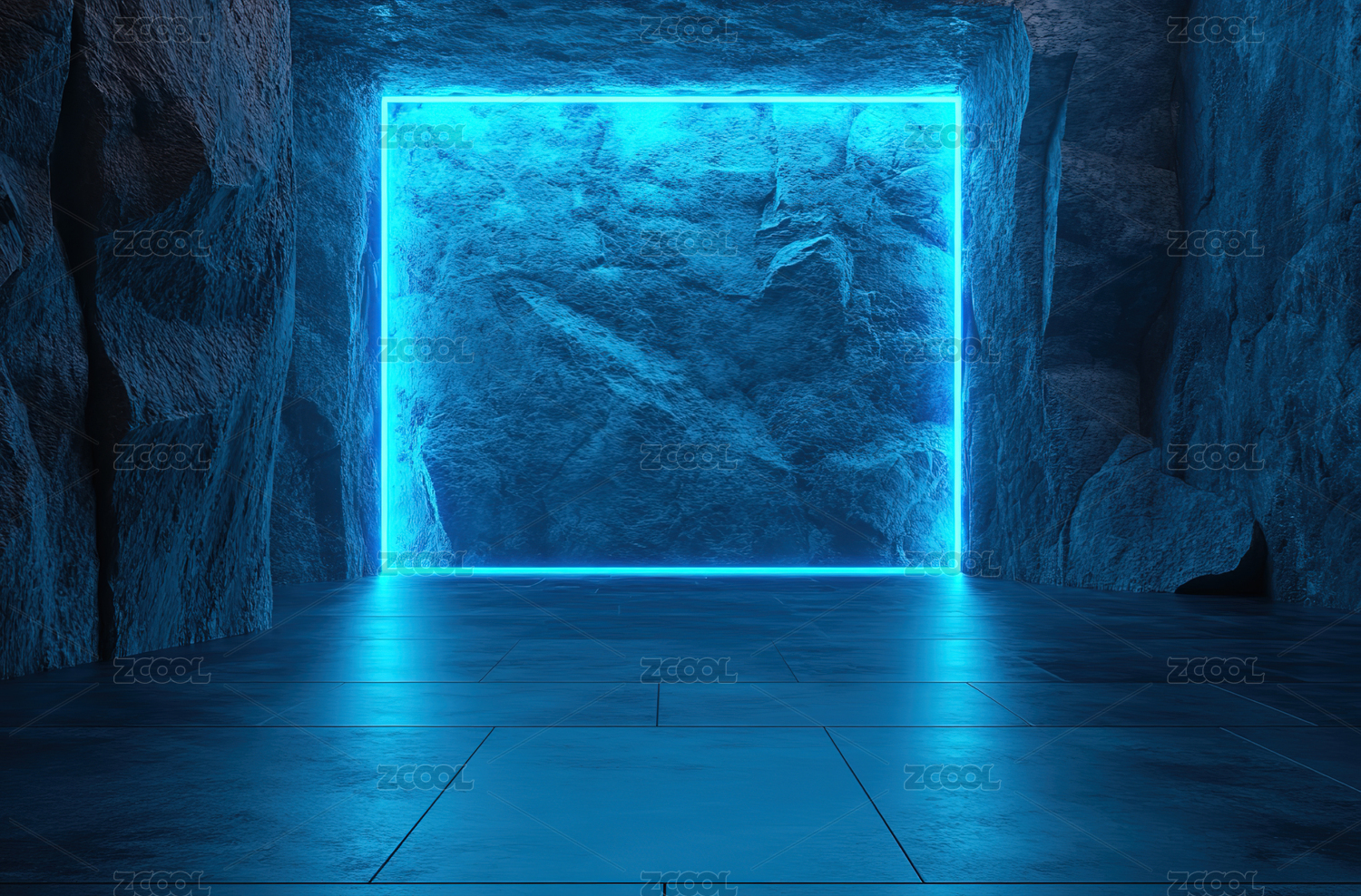 岩石洞穴中的霓虹立方体