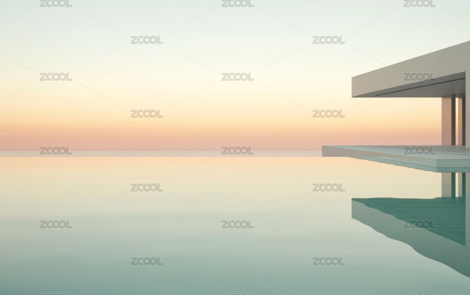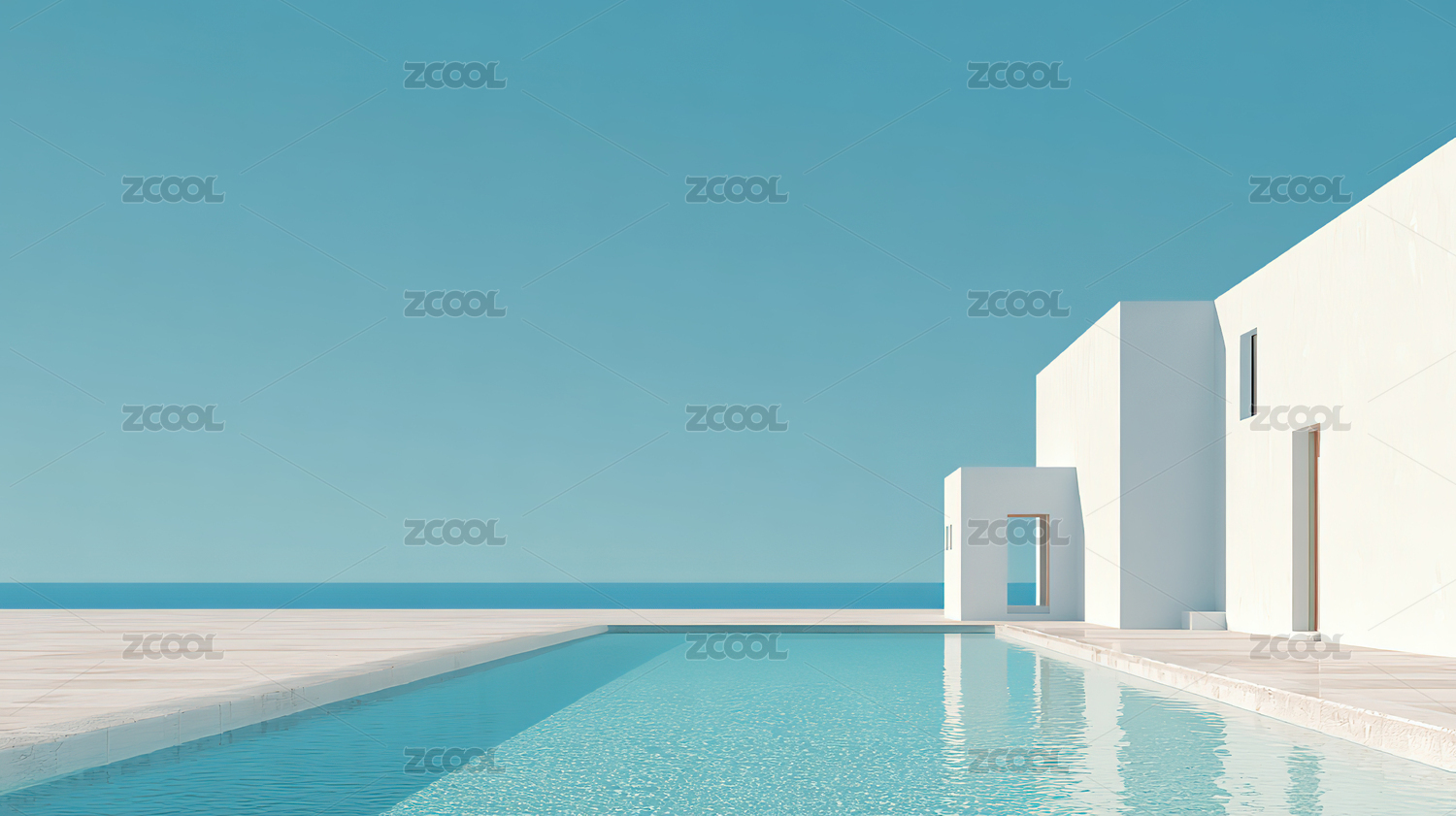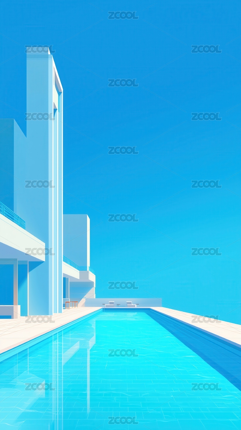 清新高层建筑楼顶的游泳池3D卡通立体插画