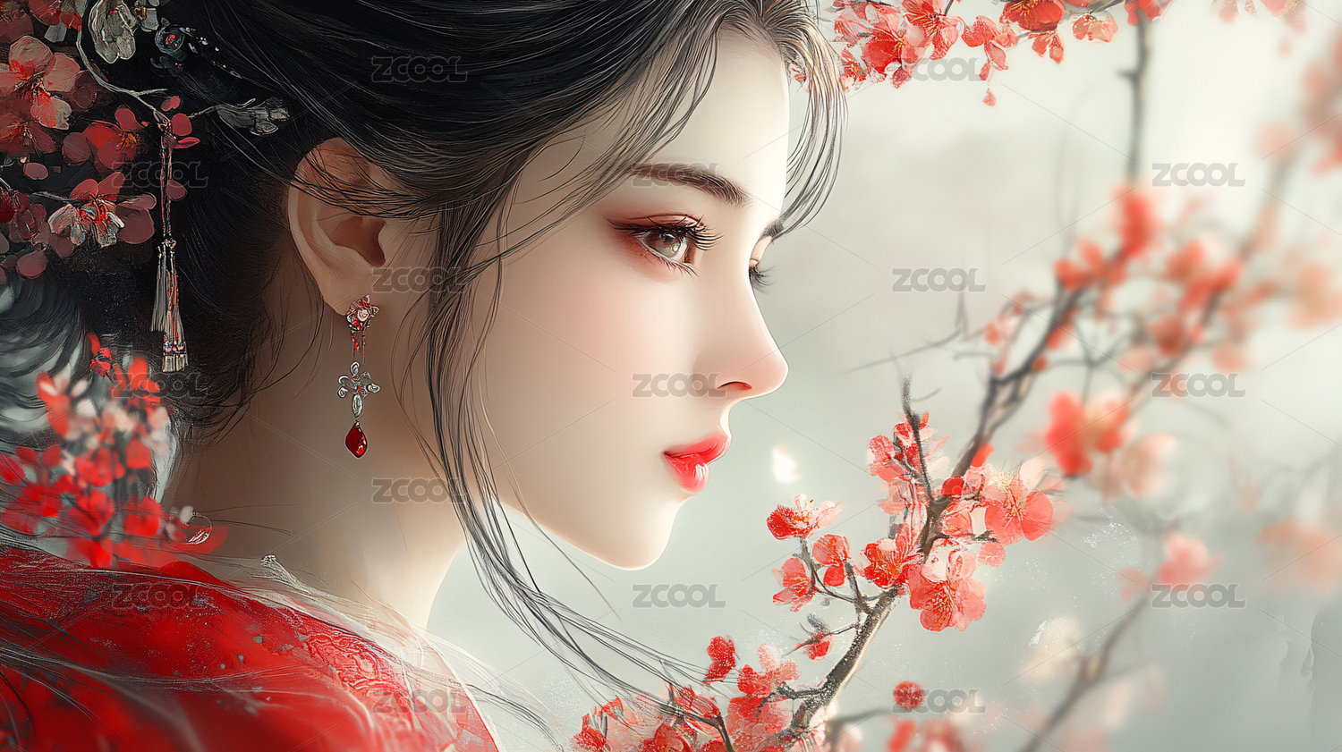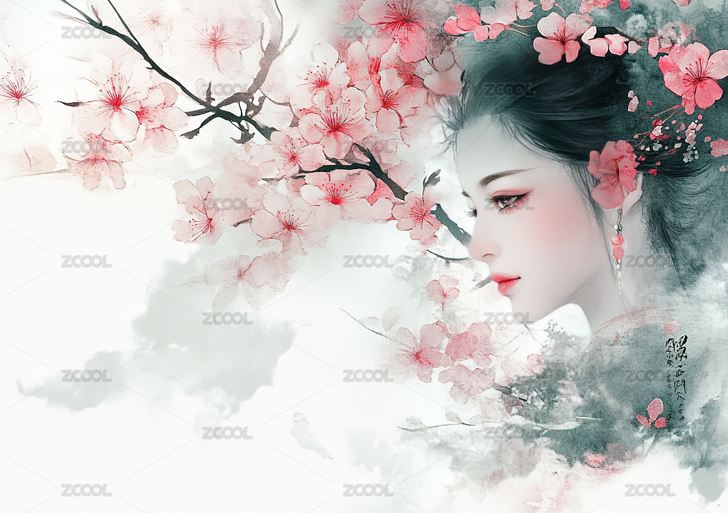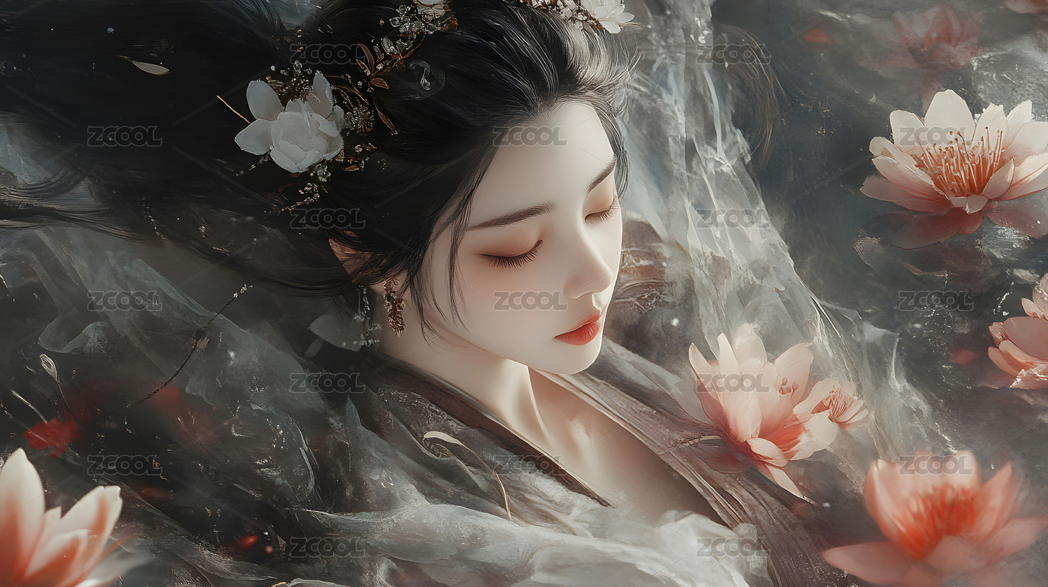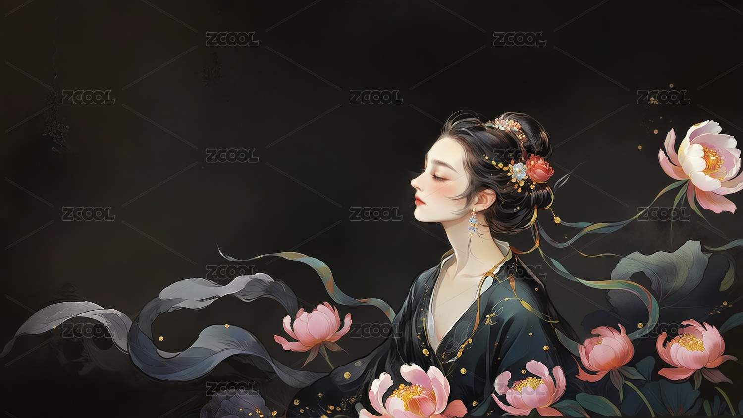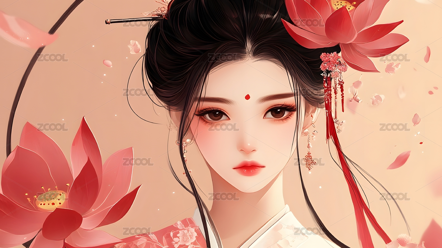 中国,国风,国潮,插画,神话,人物,神仙,仙女,花仙,荷花