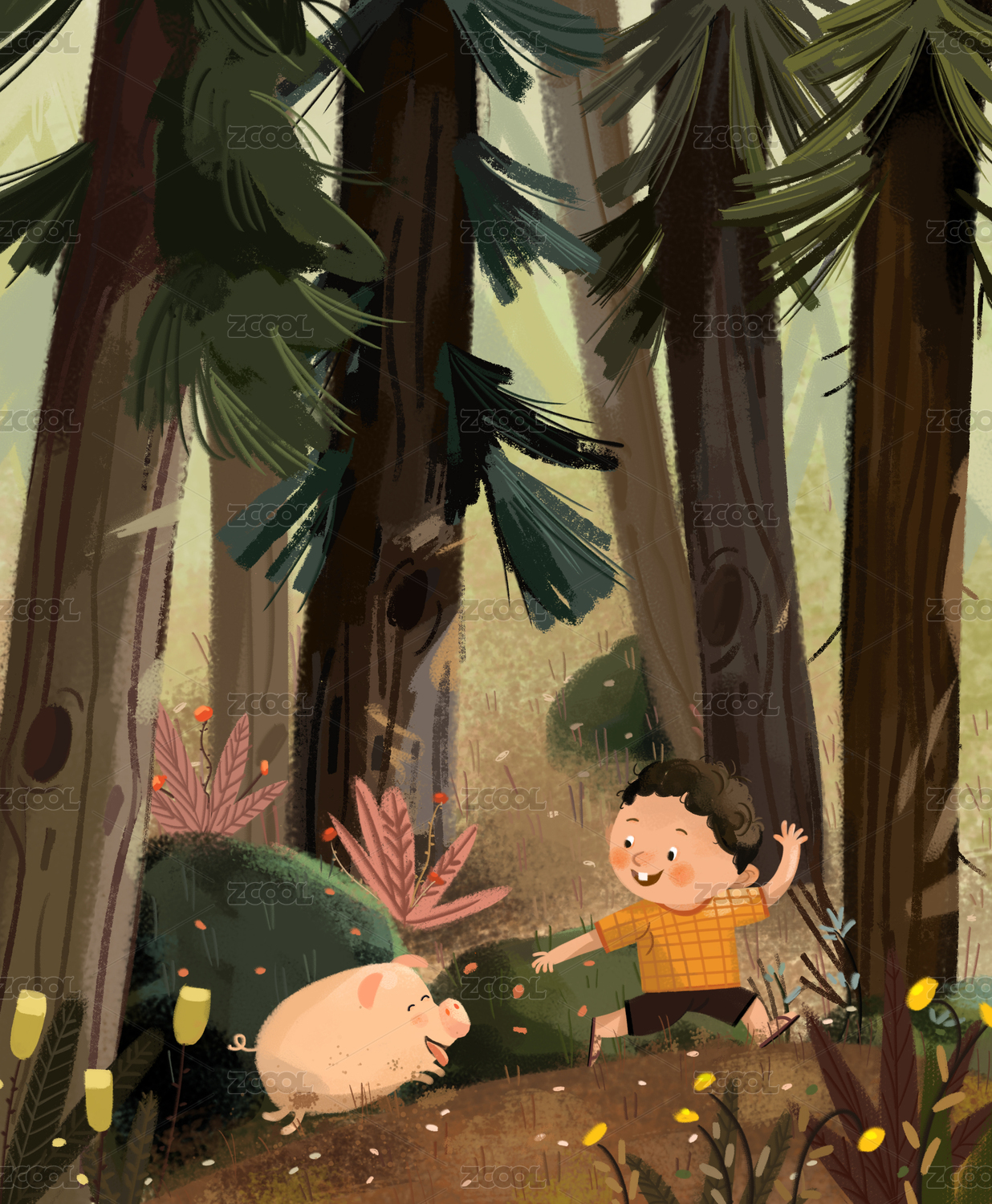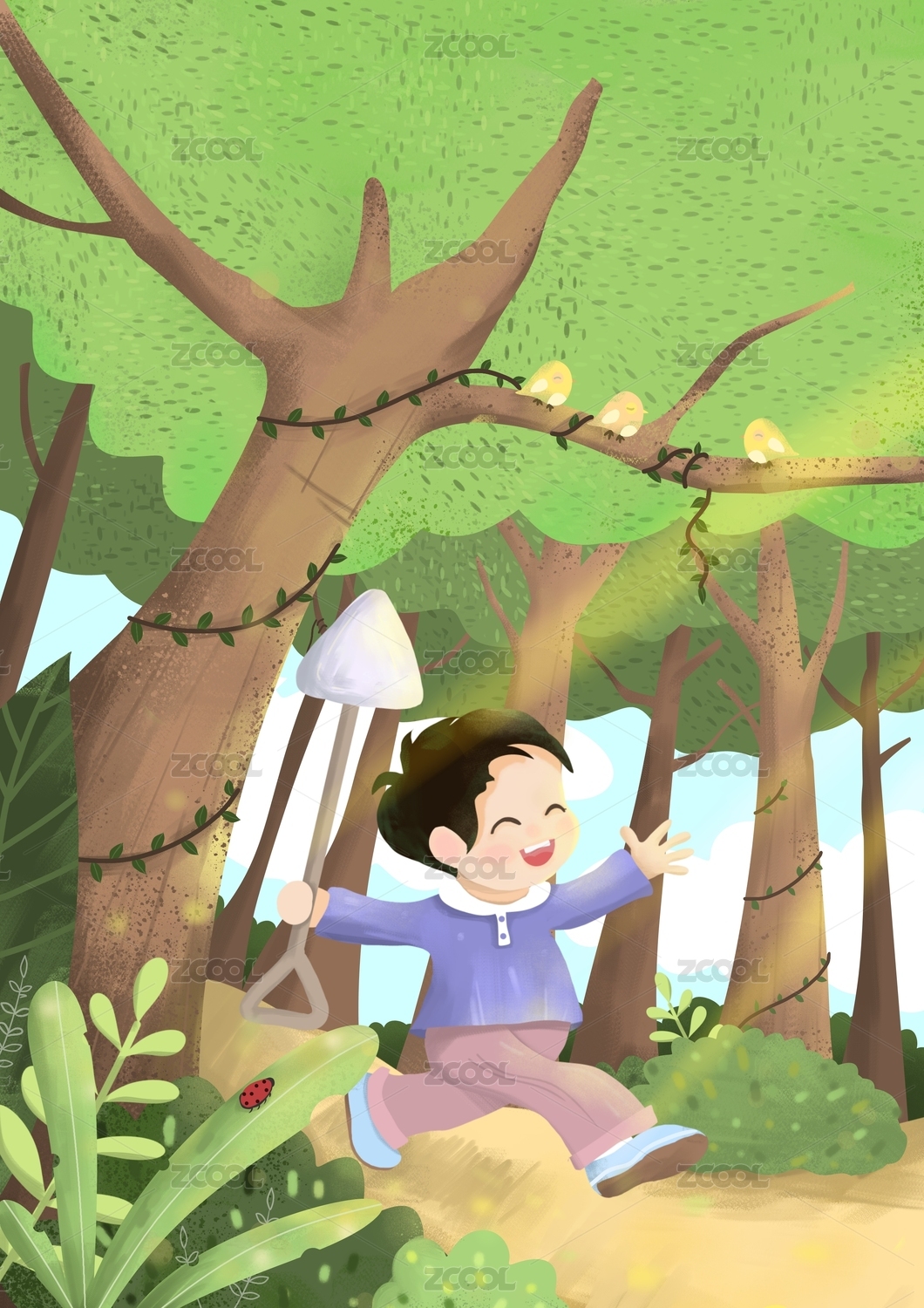 森林里的采花小女孩