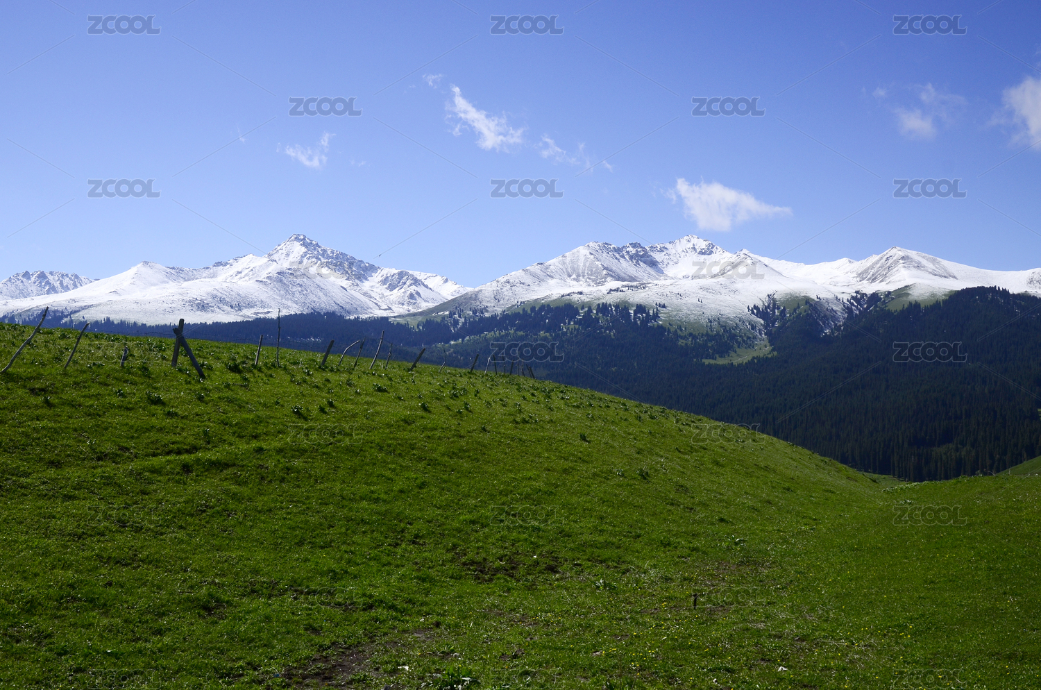 中国 新疆 江布拉克 雪山与草原