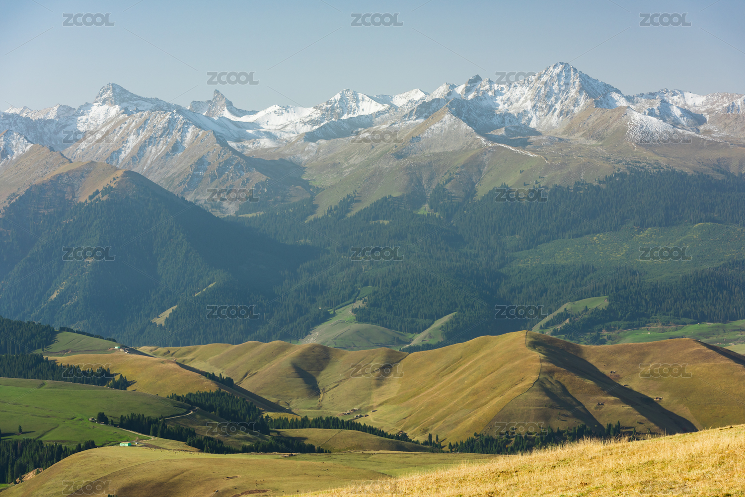 中国新疆伊犁琼库什台雪山森林草原风光