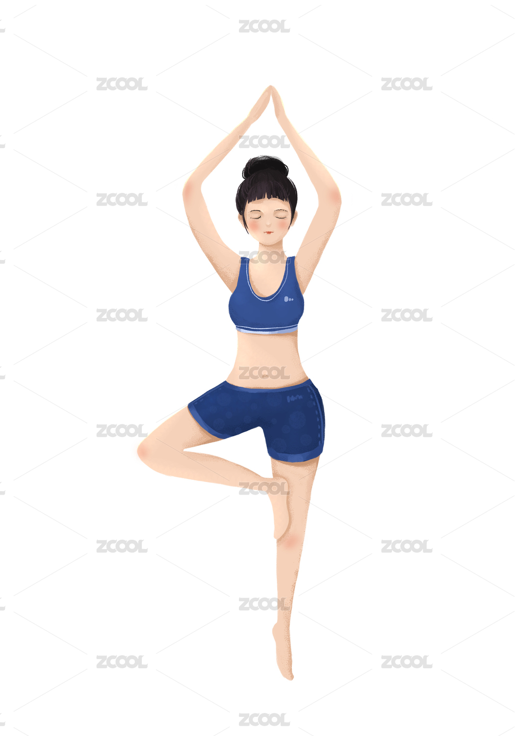 扁平,插画,运动,瑜伽,元素,女孩,小清新,人