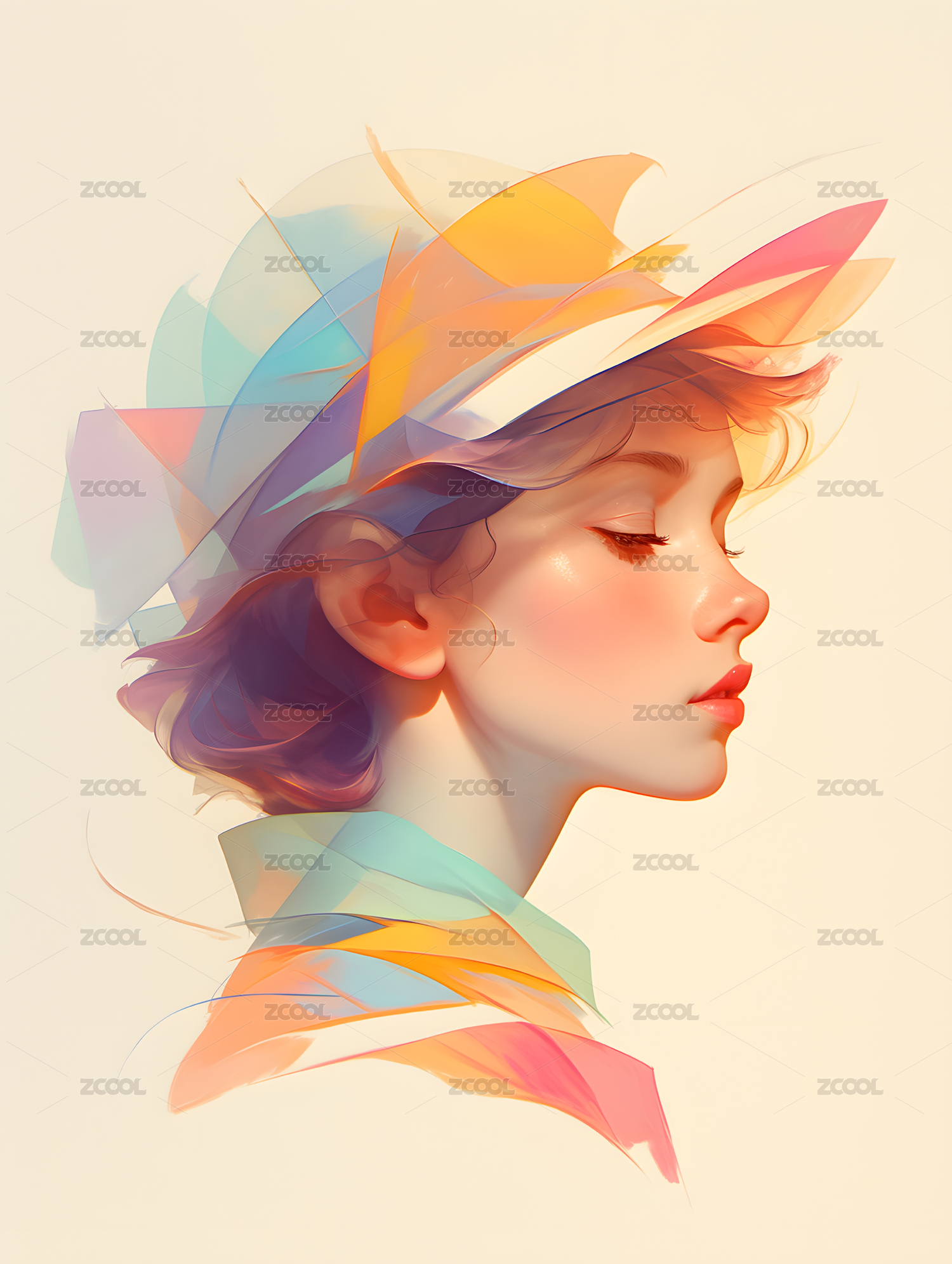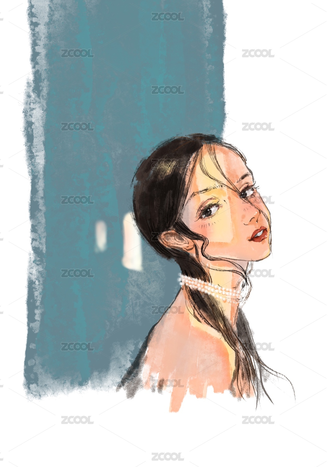 ipad手绘彩色艺术水墨女性肖像画