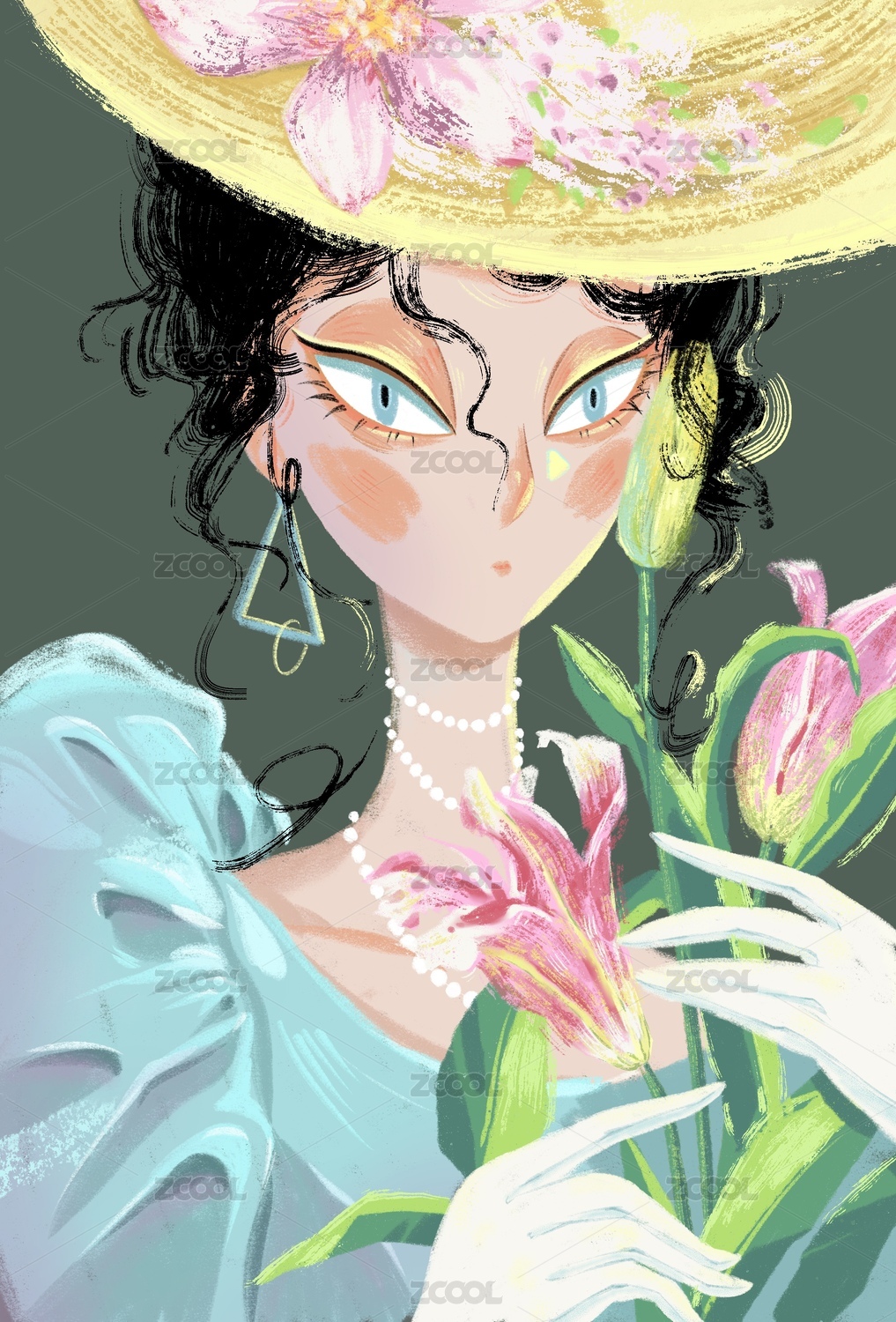 手捧百合花的女孩