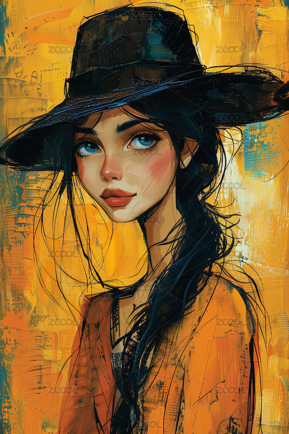 少女油画风遮面肖像艺术作品