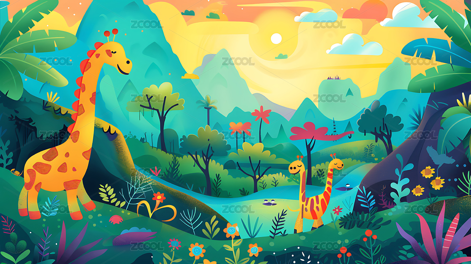 可爱恐龙插画儿童教育概念插图可爱恐龙插画